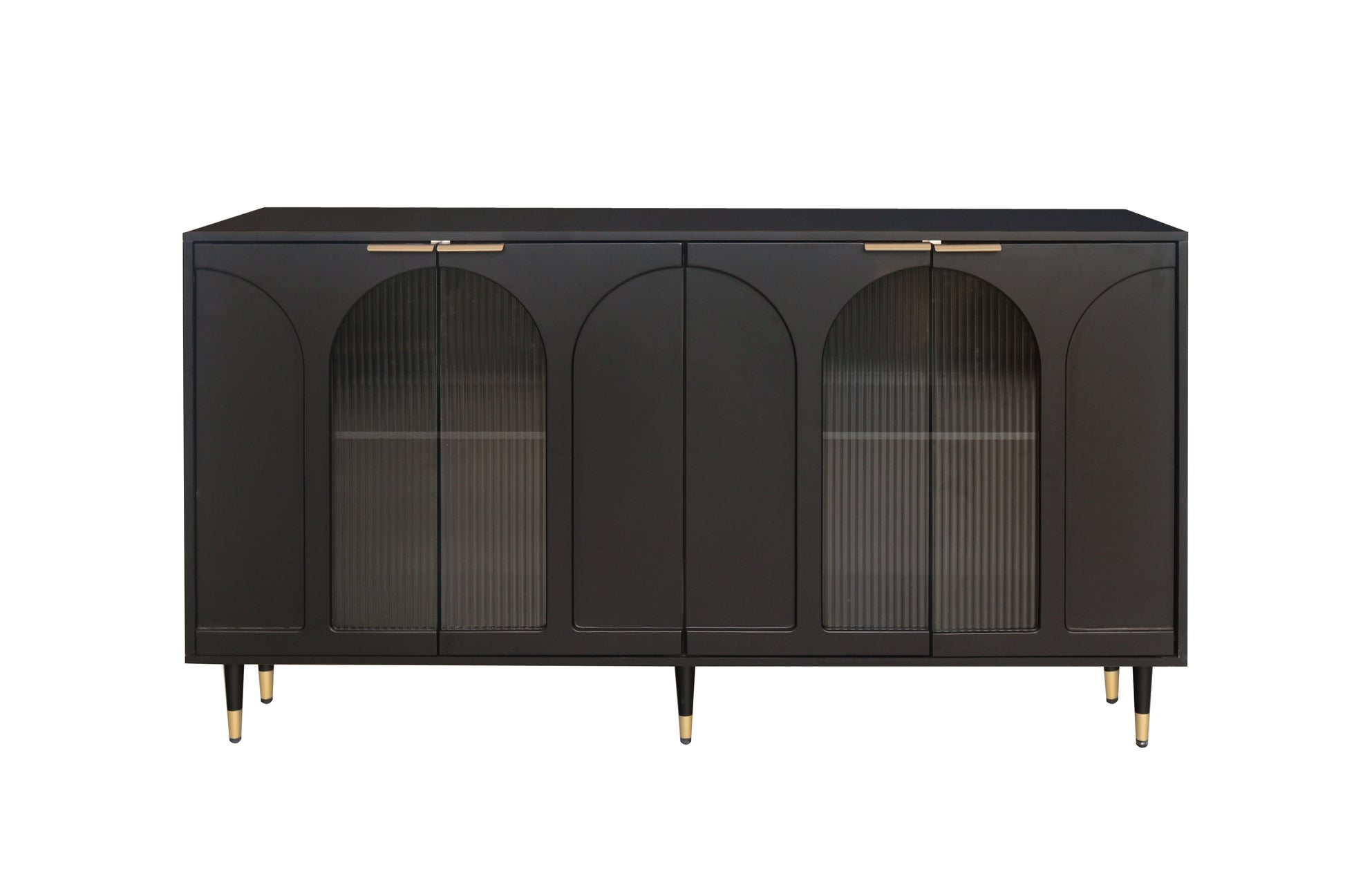 Accent Cabinet Lacquered Wooden Cabinet With 4 Glass Doors Sideboard Buffet Server Cabinet Storage Cabinet, For Living Room, Entryway, Hallway, Office, Kitchen And Dining Room - Black
