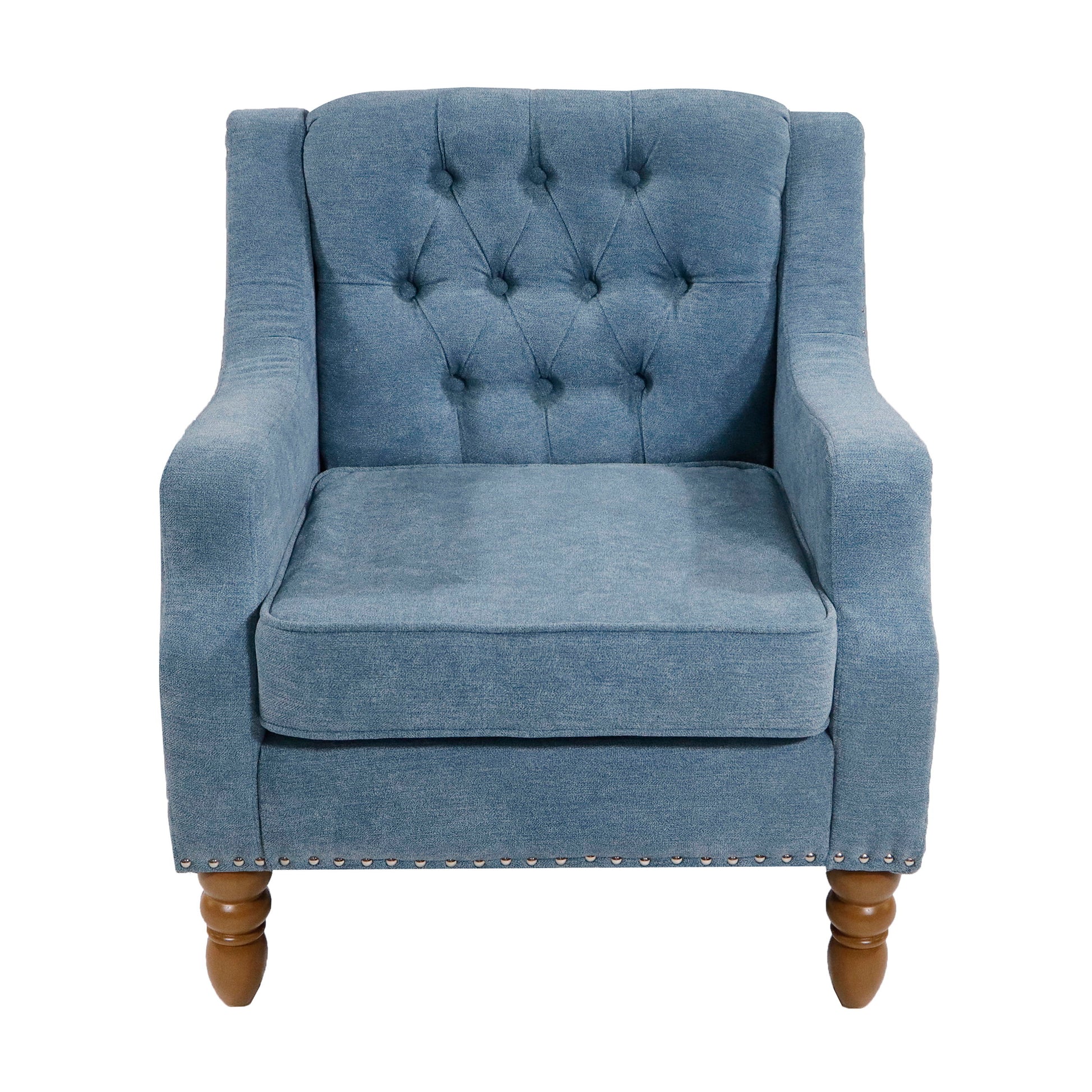 Accent Chair, Living Room Chair, Footrest Chair Set With Vintage Brass Studs, Button Tufted Upholstered Armchair For Living Room, Comfy Reading Chair For Bedroom, Reception Room - Blue