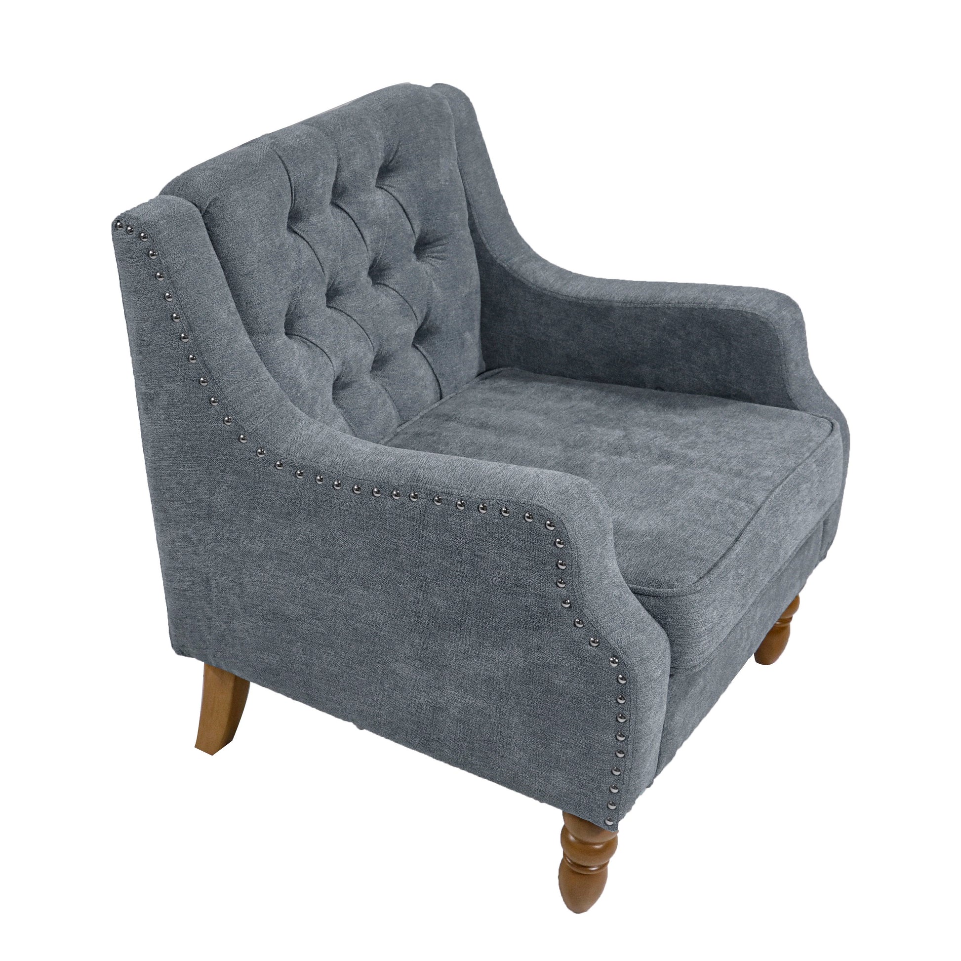 Accent Chair, Living Room Chair, Footrest Chair Set With Vintage Brass Studs, Button Tufted Upholstered Armchair For Living Room, Comfy Reading Chair For Bedroom, Reception Room - Gray