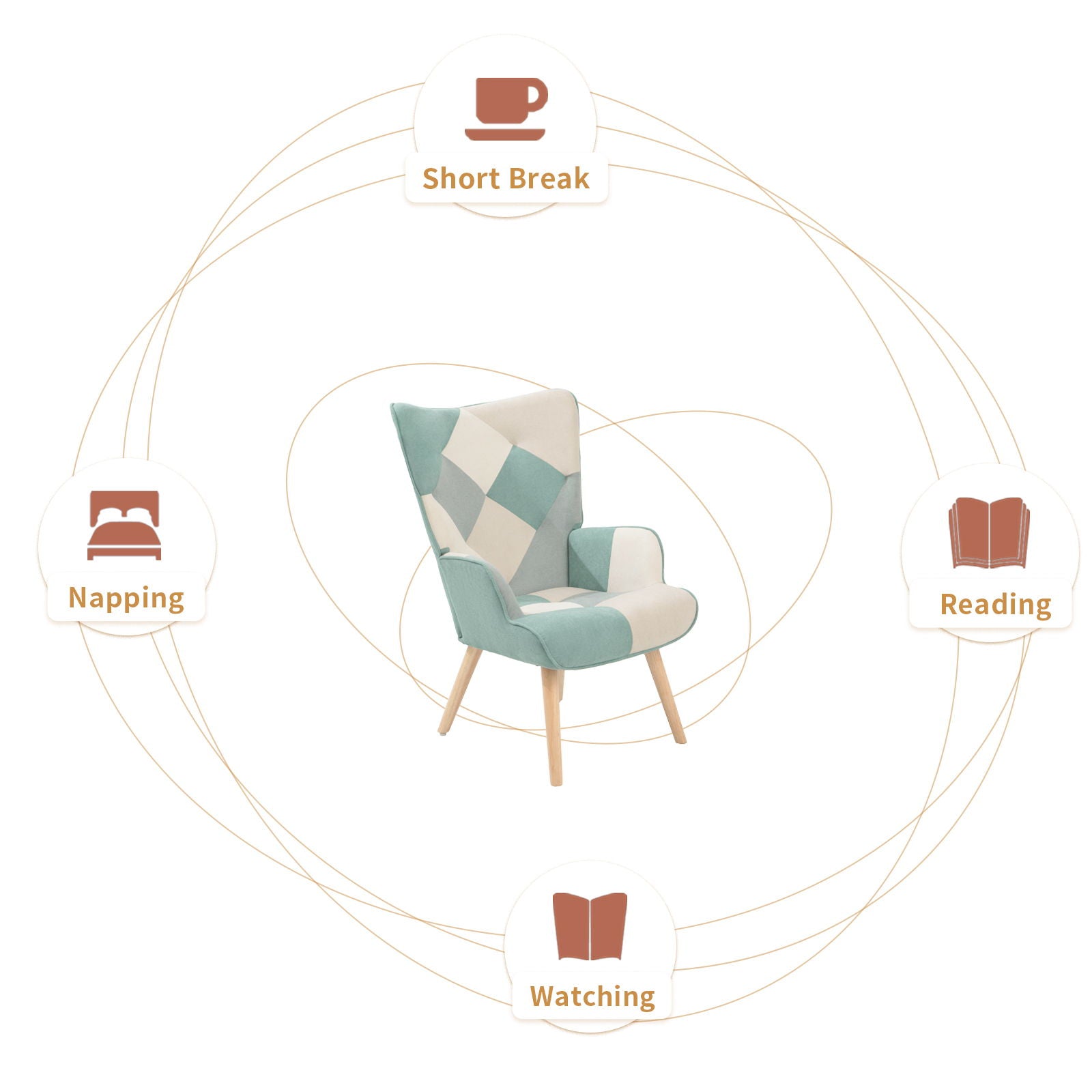 Accent Chair With Ottoman, Living Room Chair And Ottoman Set, Comfy Side Armchair For Bedroom, Creative Splicing Cloth Surface - Blue