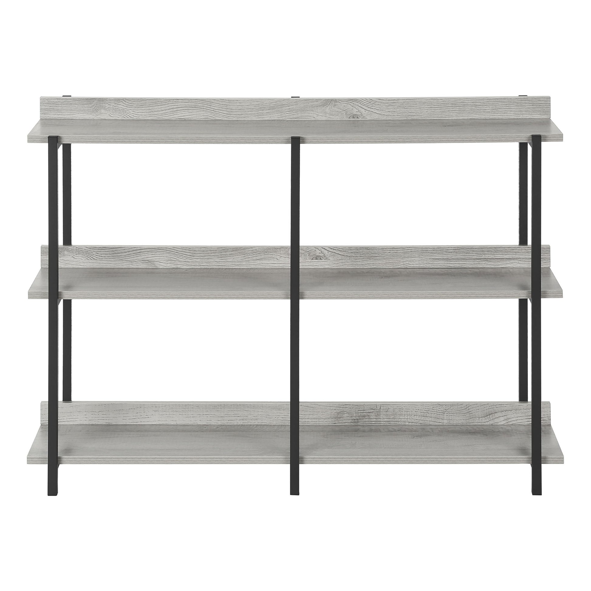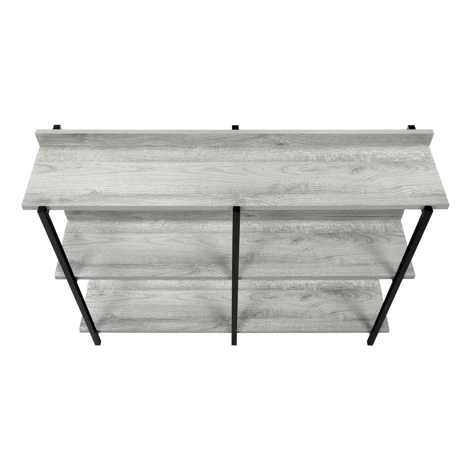 - Design & Shelves: This 3-tier console table features a long, rectangular tabletop with two storage shelves, offering a symmetrical display. The grey finish adds a touch of elegance to any space.