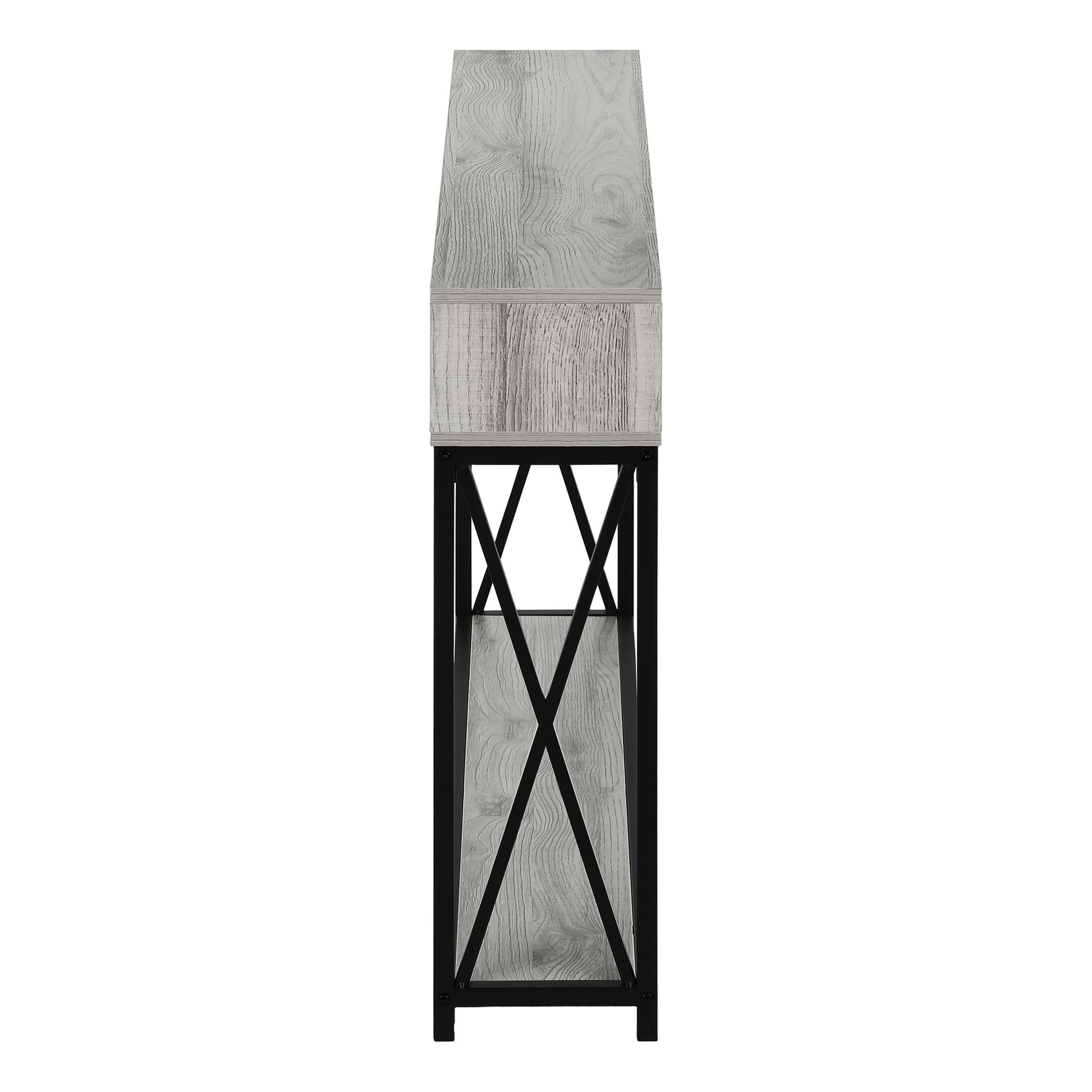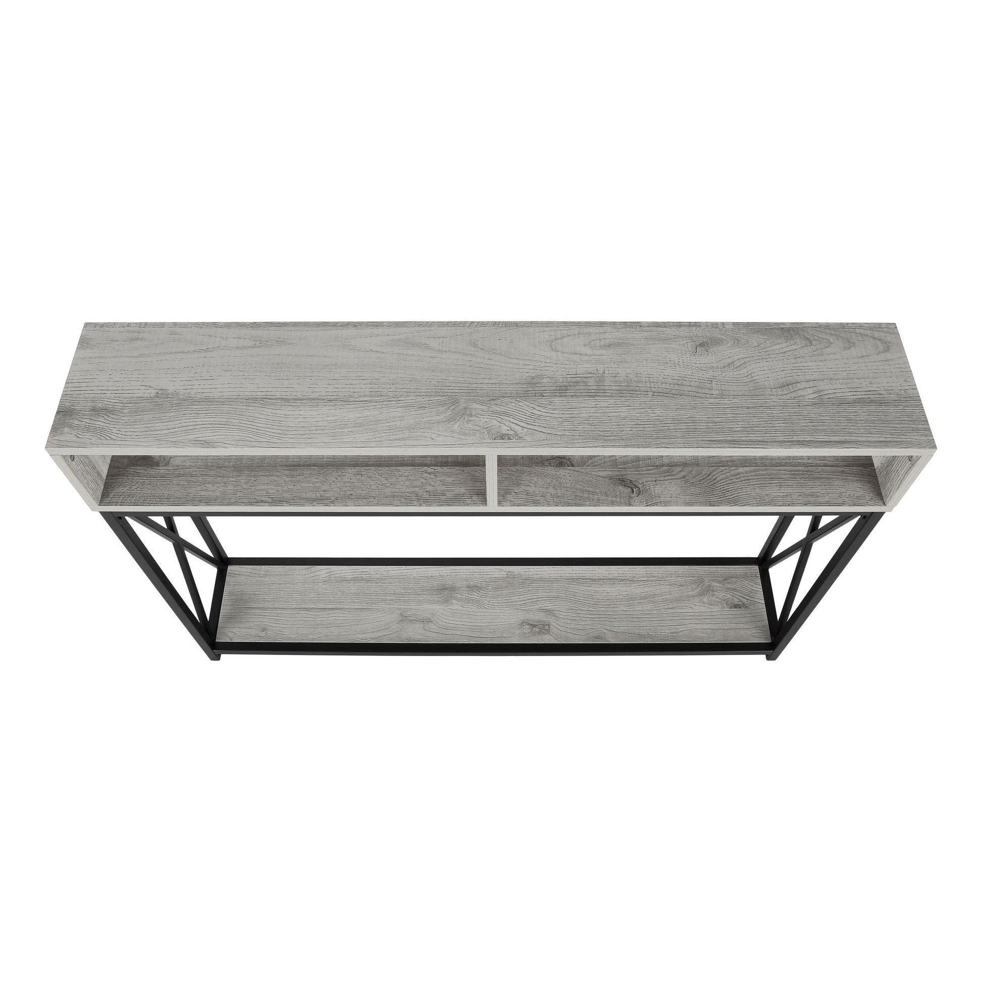 - Contemporary Design: This console table features a durable wood-look surface with a sleek grey finish, offering a modern aesthetic that complements various interior styles.