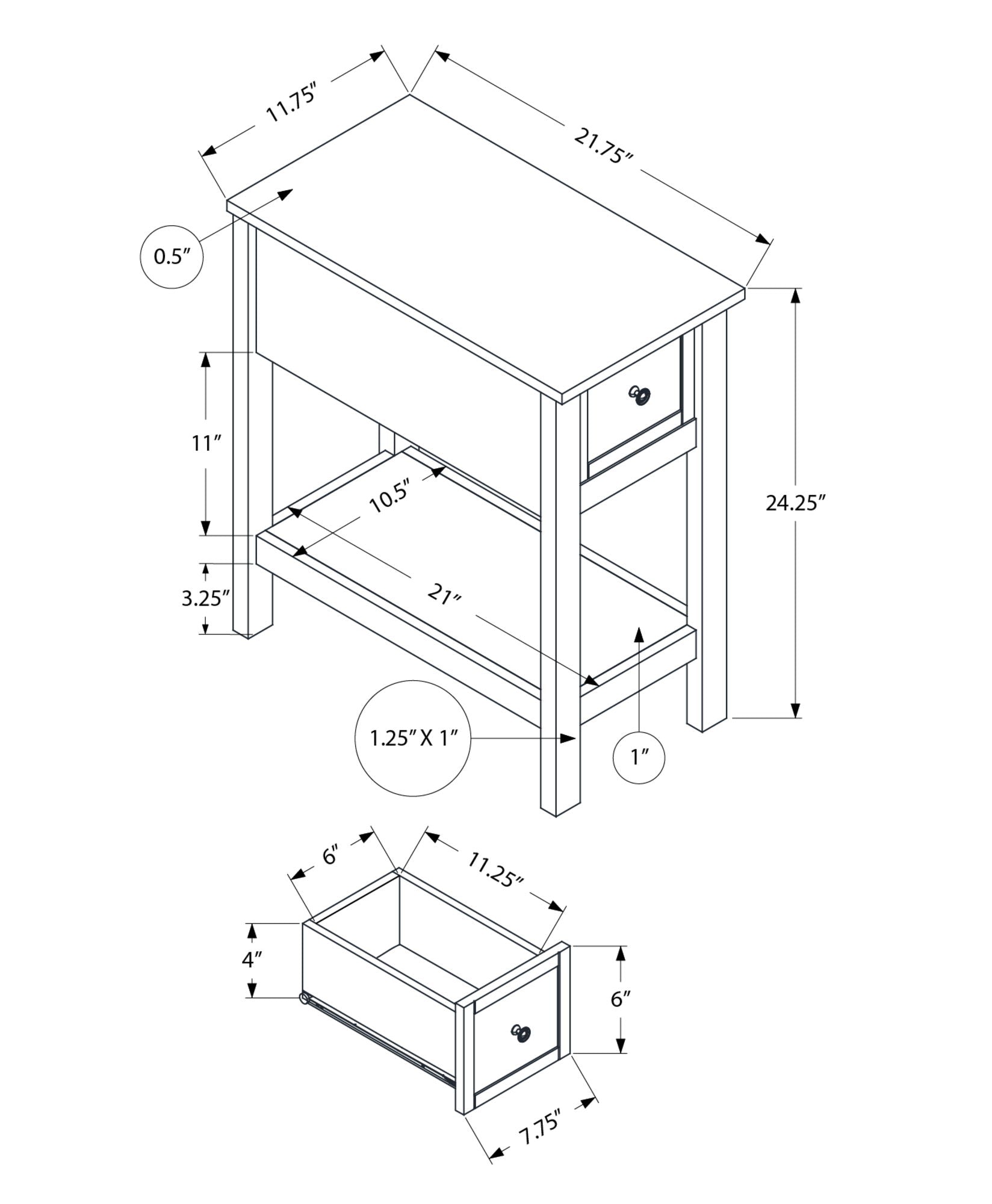 - Compact Dimensions: Measuring 11.75 inches wide, 21.75 inches long, and 24.25 inches high, this table fits well in smaller spaces while providing ample functionality.