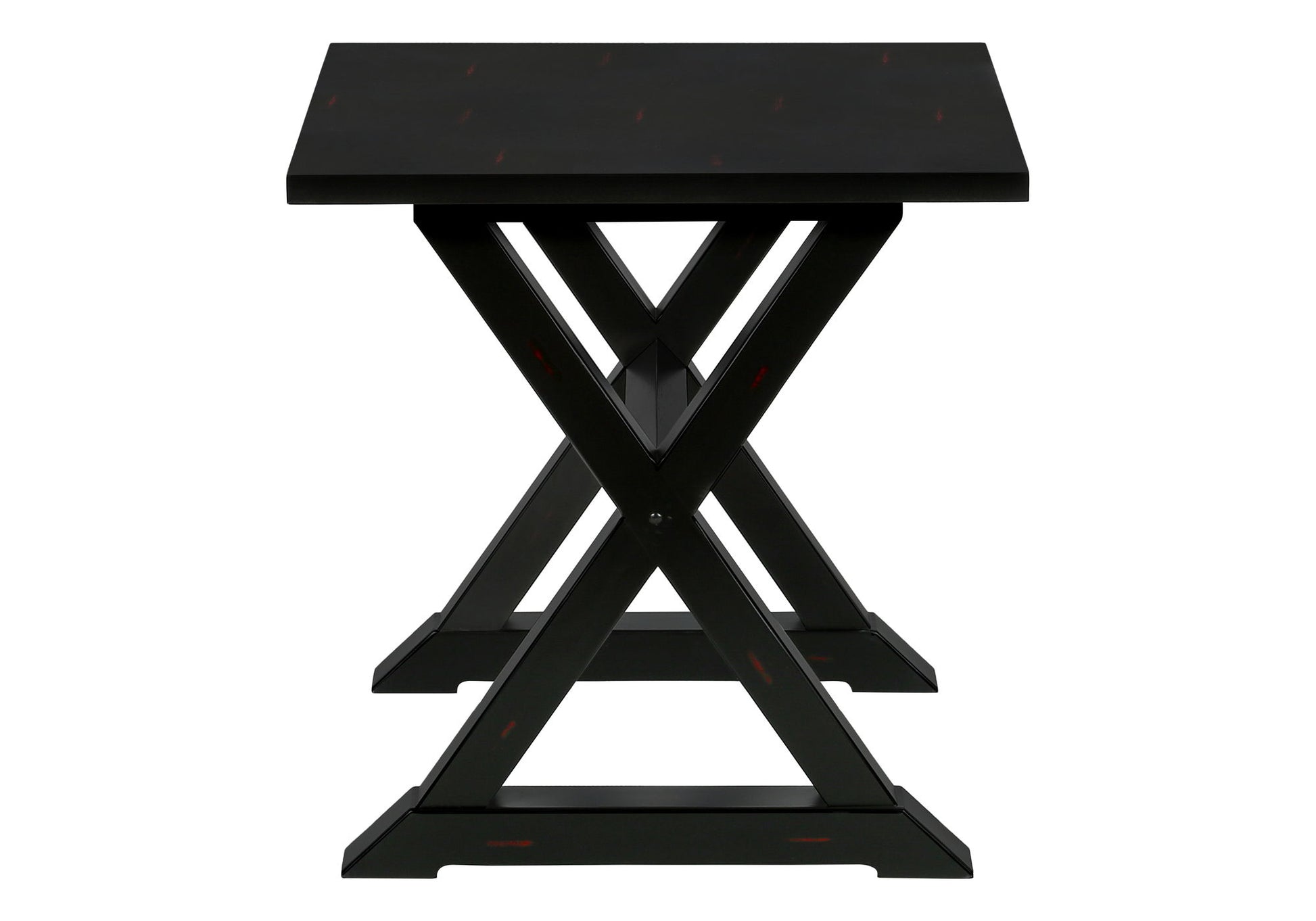 - Versatile Design: This accent table features a solid wood trestle style base, making it suitable as an end or side table in a living room, or as a chic nightstand in a bedroom.
