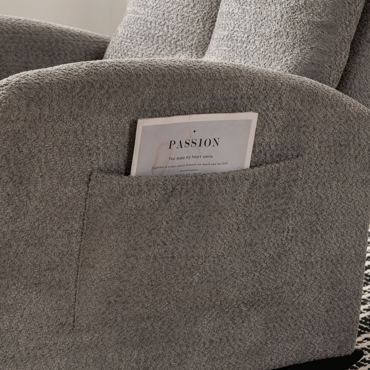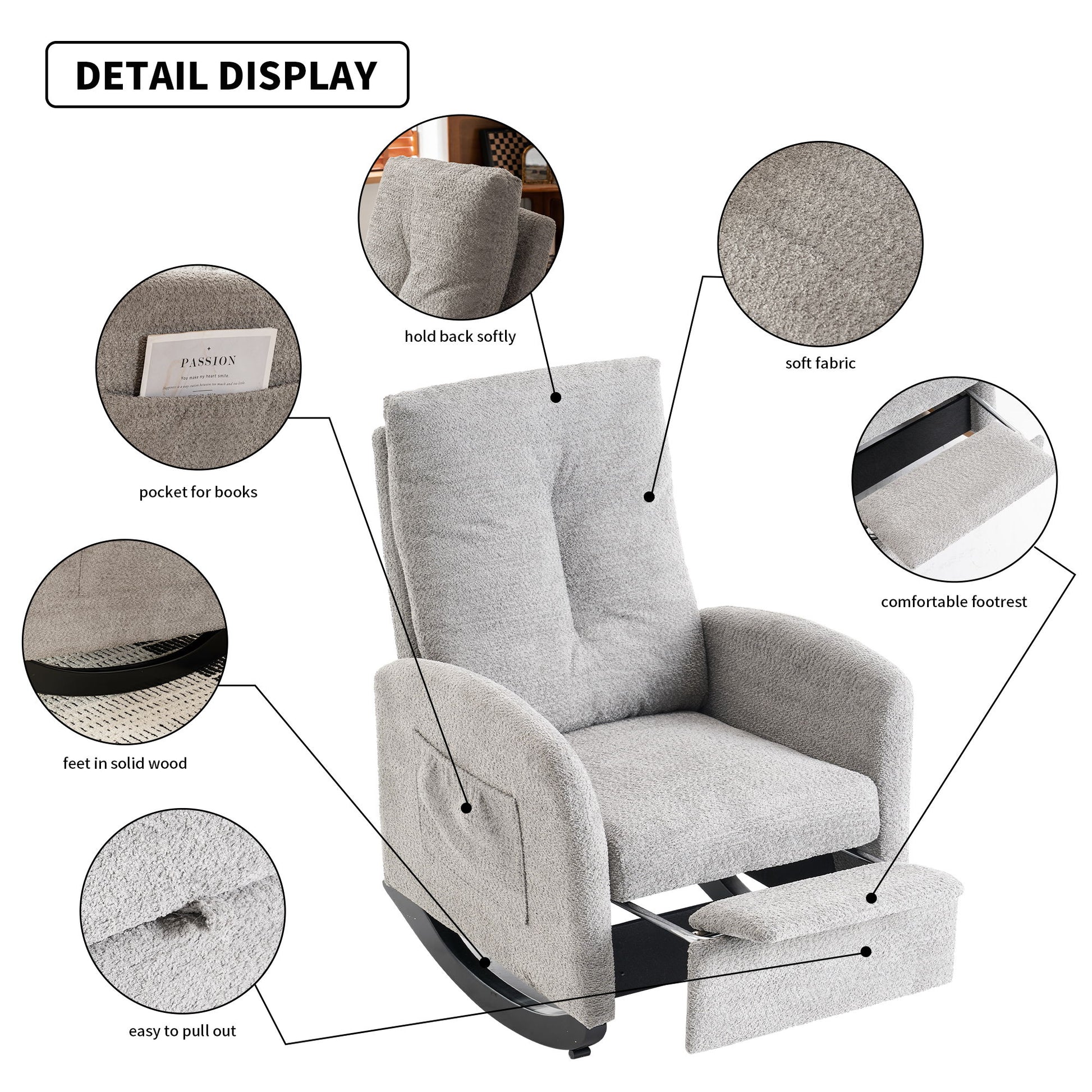 - Comfortable Seating: This upholstered rocking chair features a thick cushion seat and back, providing an incredibly soft sitting experience designed to relieve fatigue.