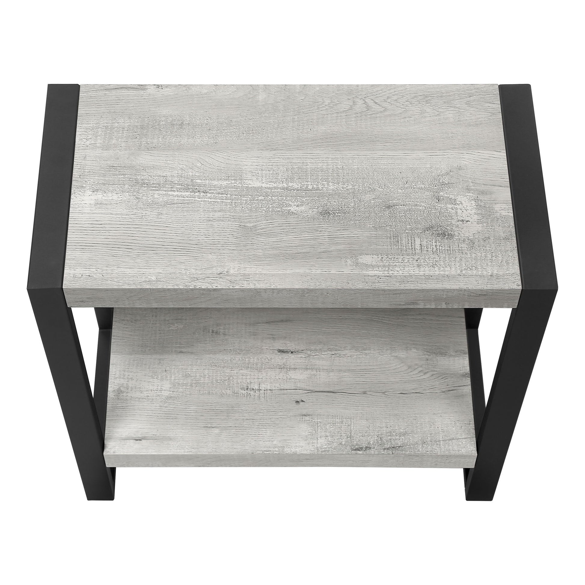 - Design and Finish: This 2-tier accent table features a thick, rectangular tabletop paired with a fixed lower shelf, all in a stylish grey reclaimed wood-look finish. It's designed to complement various room decors.