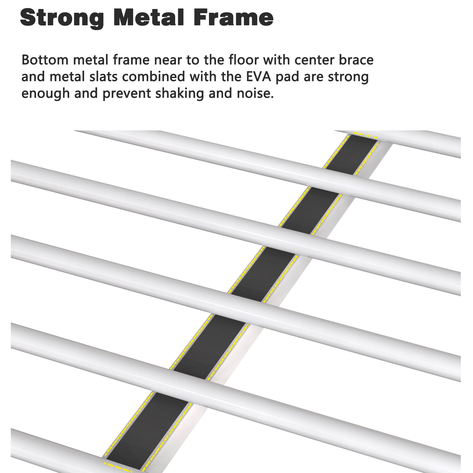 - No Box Spring Required: 20-22 strong metal slats on both bunks provide excellent mattress support and prevent sagging.