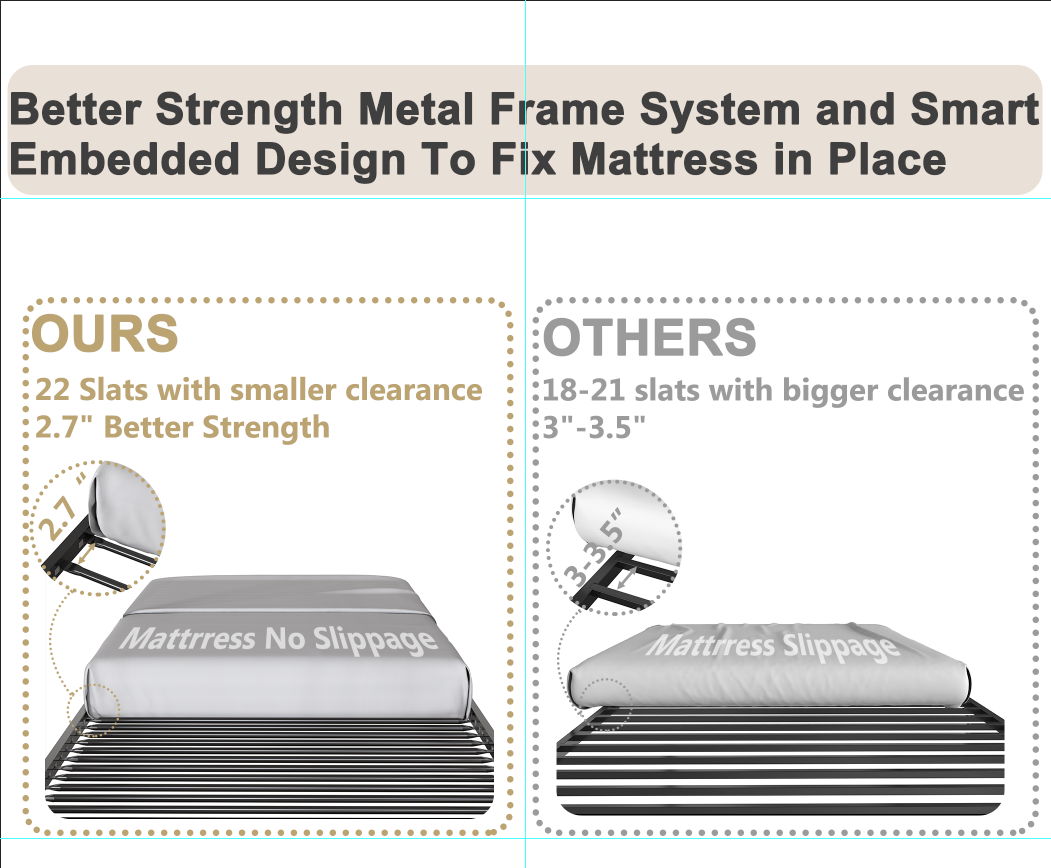 - No Box Spring Required: 20-22 strong metal slats on both bunks provide excellent mattress support and prevent sagging.