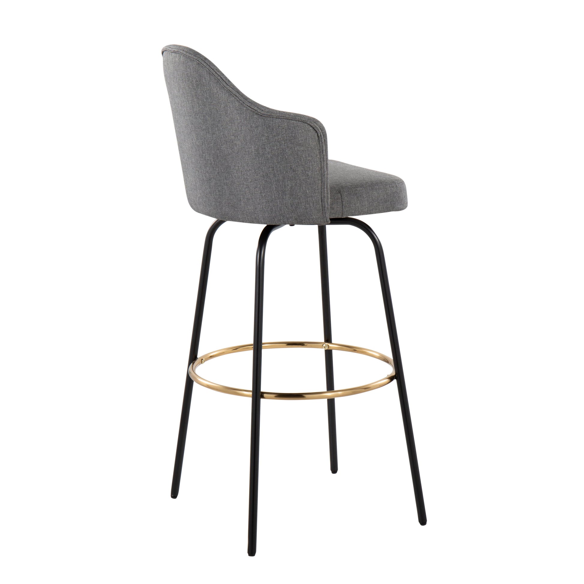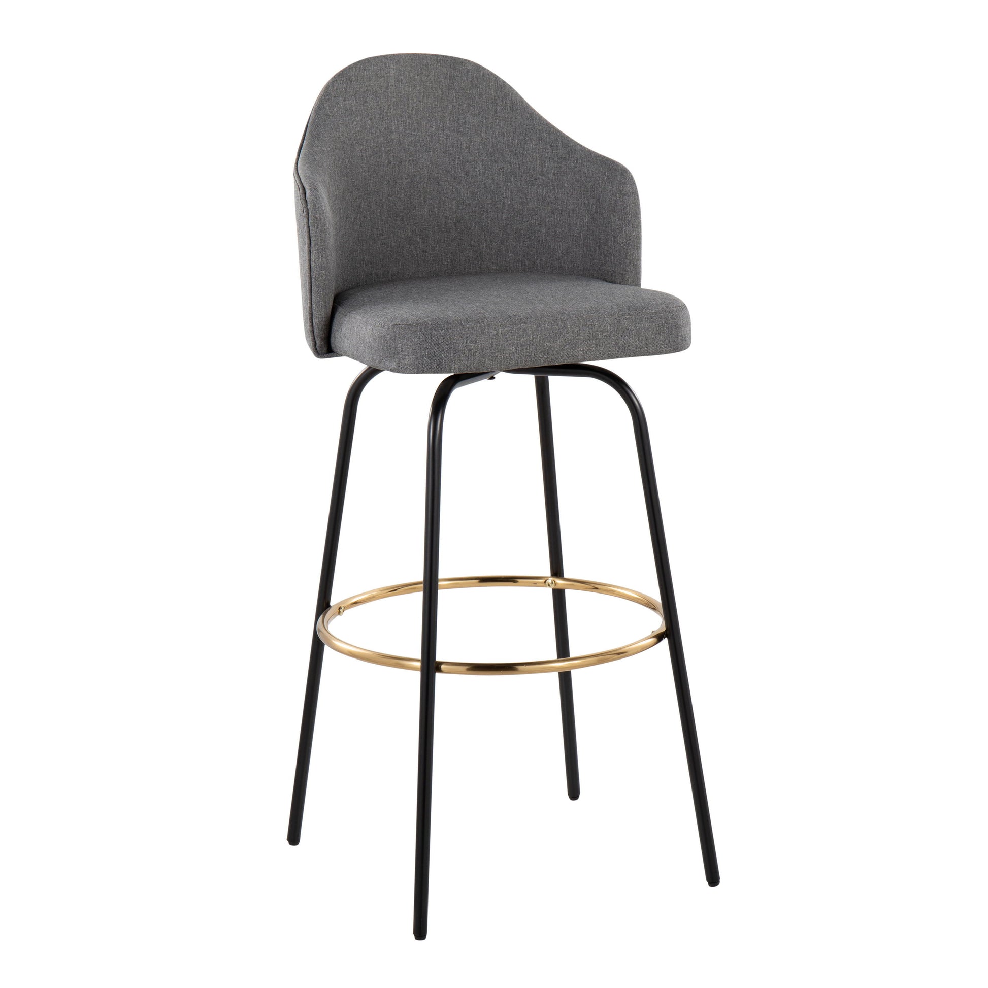 Ahoy - Contemporary Fixed Height Bar Stool Round Gold Footrest (Set of 2) - Gray / Black