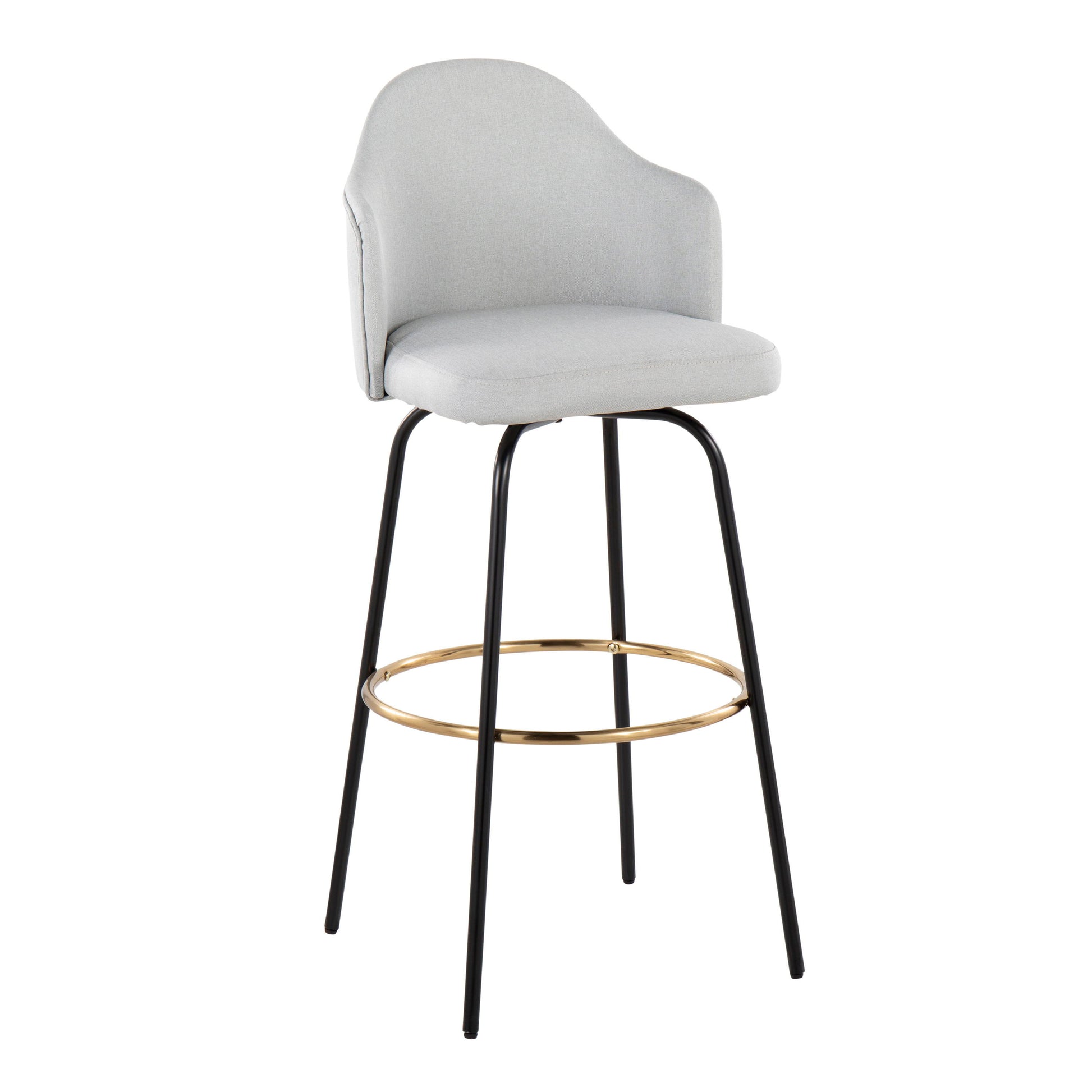 Ahoy - Contemporary Fixed Height Bar Stool Round Gold Footrest (Set of 2) - Light Gray / Black