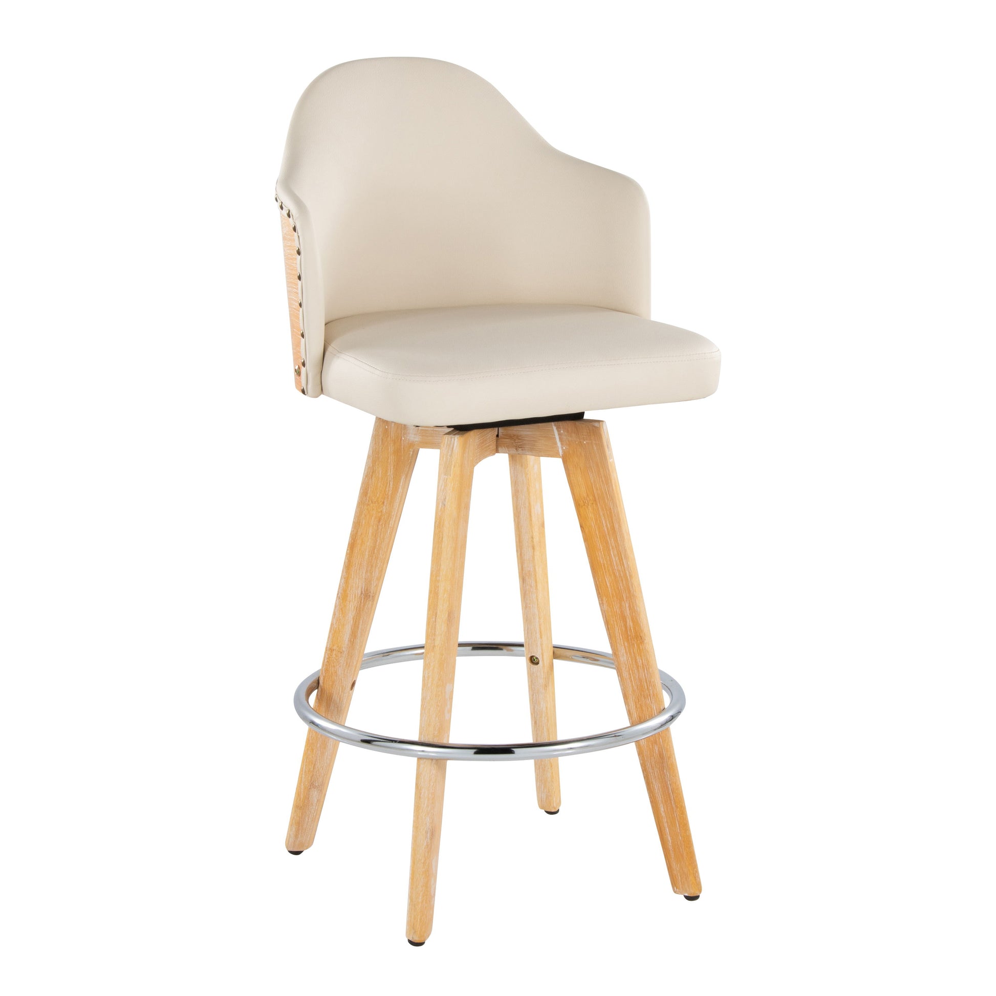 Ahoy - Contemporary Fixed Height Counter Stool With Swivel With Round Footrest (Set of 2) - Natural / Cream