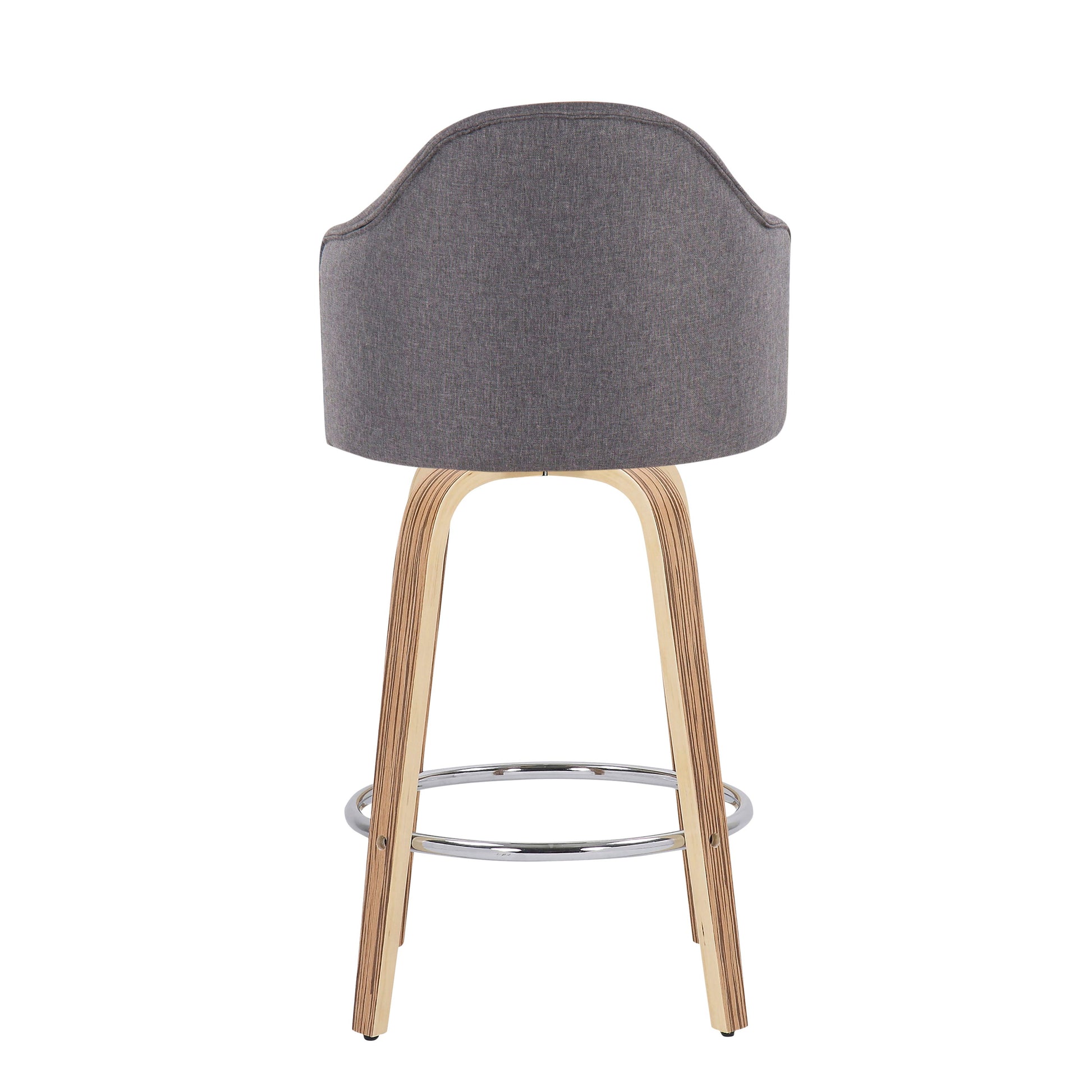 Ahoy - Mid-Century Modern Fixed Height Counter Stool With Zebra Legs / Round Chrome Footrest (Set of 2) - Gray