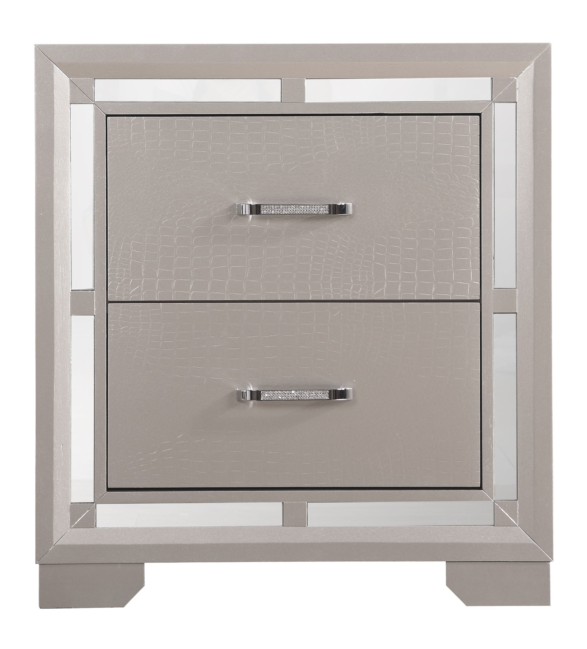 - Classic Glam Nightstand: Mirror accents and croc finish create a classic glam look.