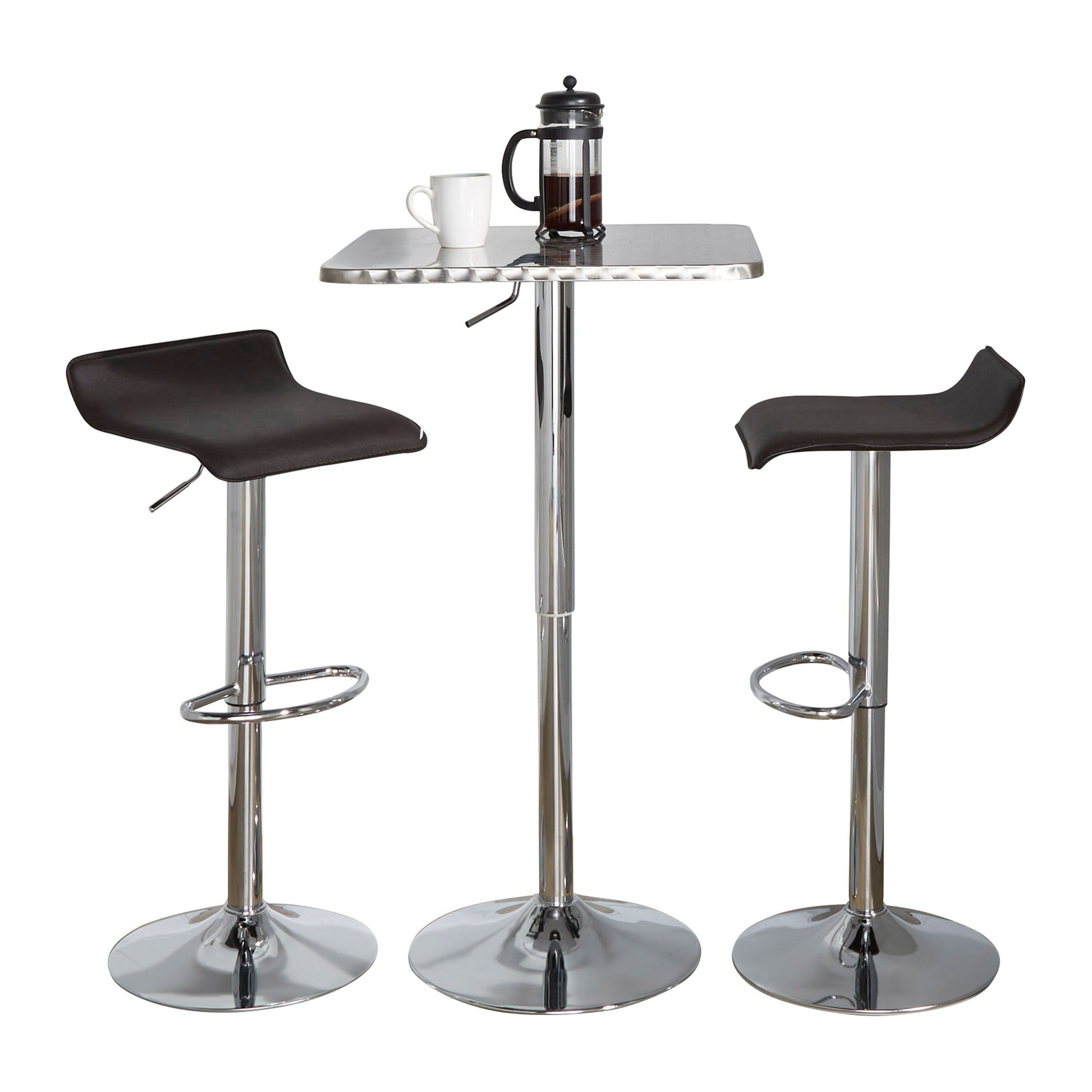 Ale - 3 Piece Bar Set Bistro Square Contemporary Adjustable Oval Footrest - Silver / Chrome / Brown