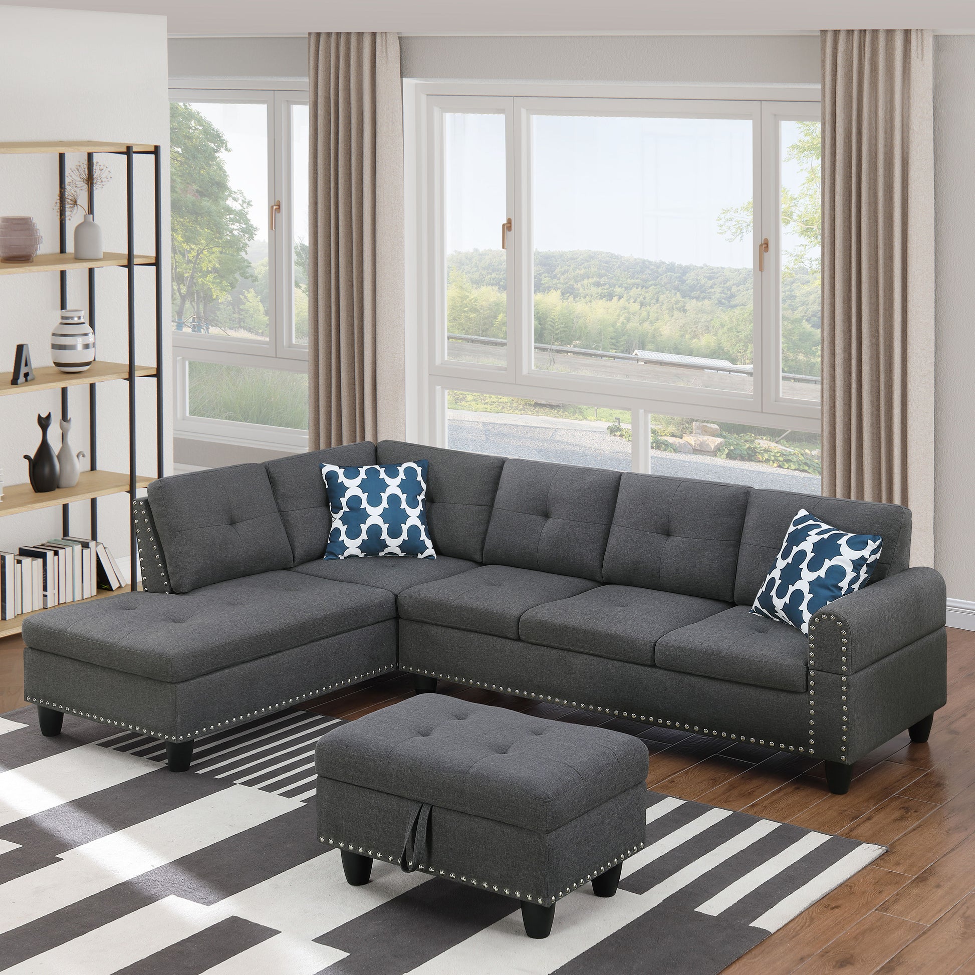 Alger - 98" Wide Left Hand Facing Sofa & Chaise With Ottoman - Dark Gray