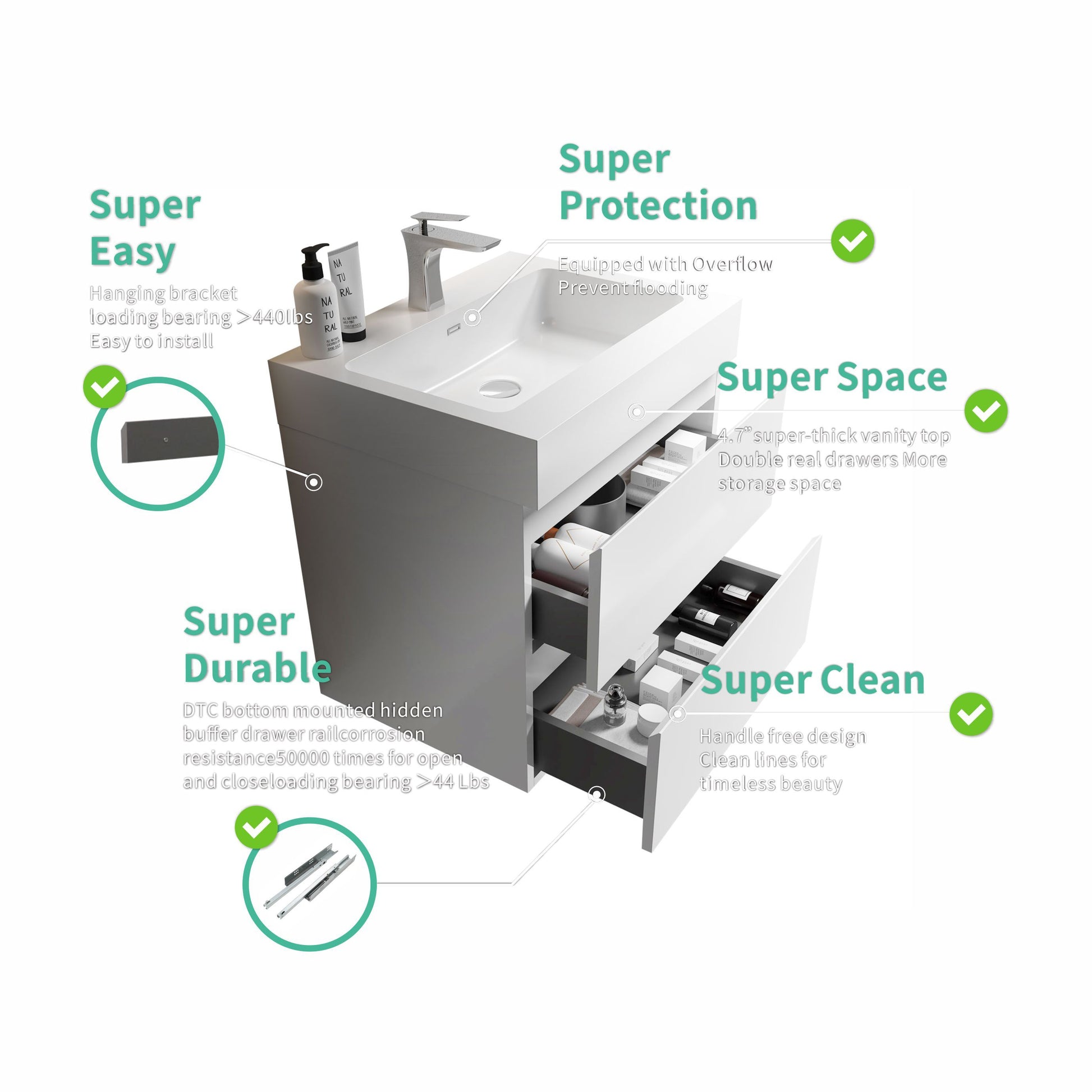 Alice - 24" Bathroom Vanity With Sink, Large Storage Wall Mounted Floating Bathroom Vanity For Modern Bathroom, One-Piece Sink Basin Without Drain And Faucet - White