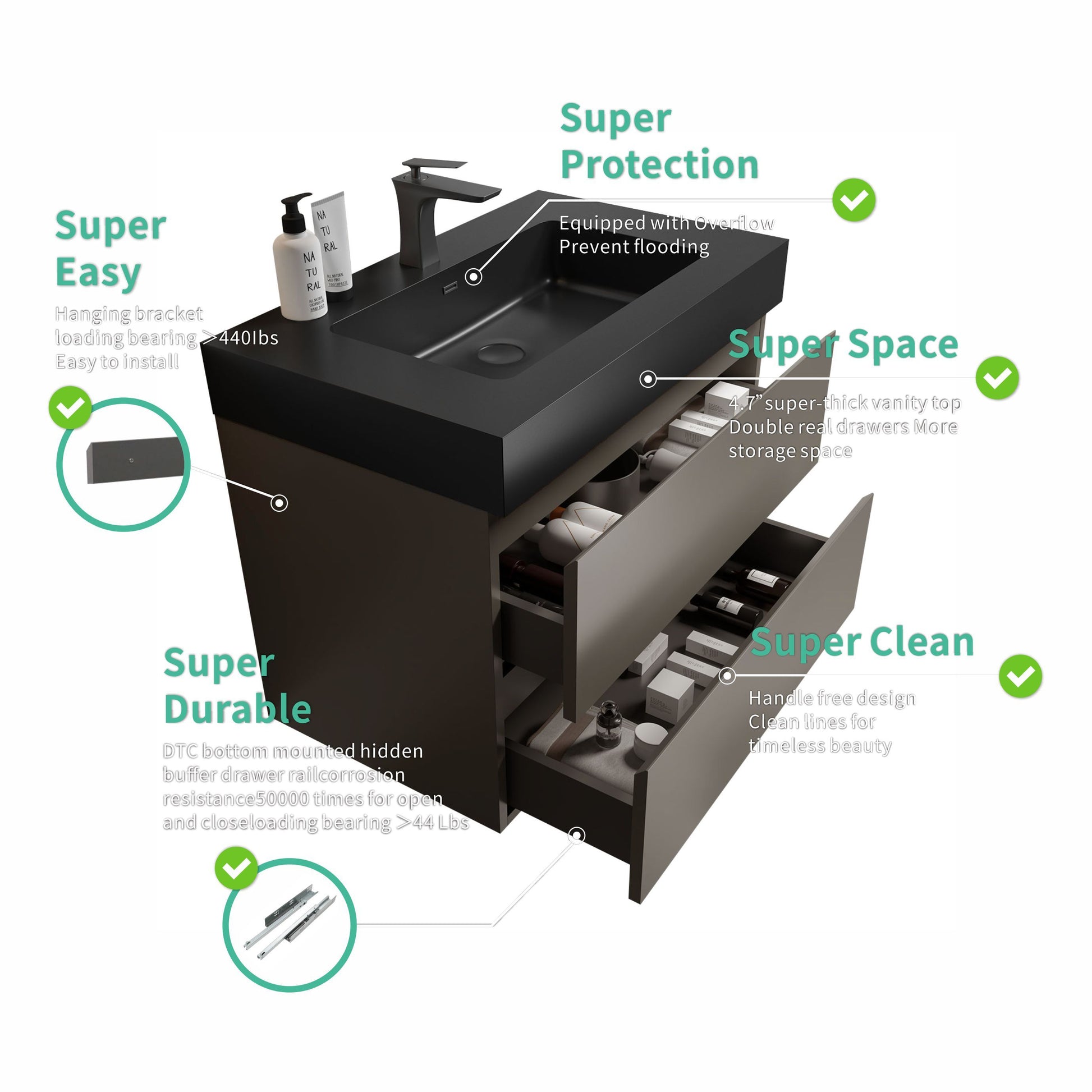 Alice - 30" Bathroom Vanity With Sink, Large Storage Wall Mounted Floating Bathroom Vanity For Modern Bathroom, One-Piece Black Sink Basin Without Drain And Faucet - Black / Gray