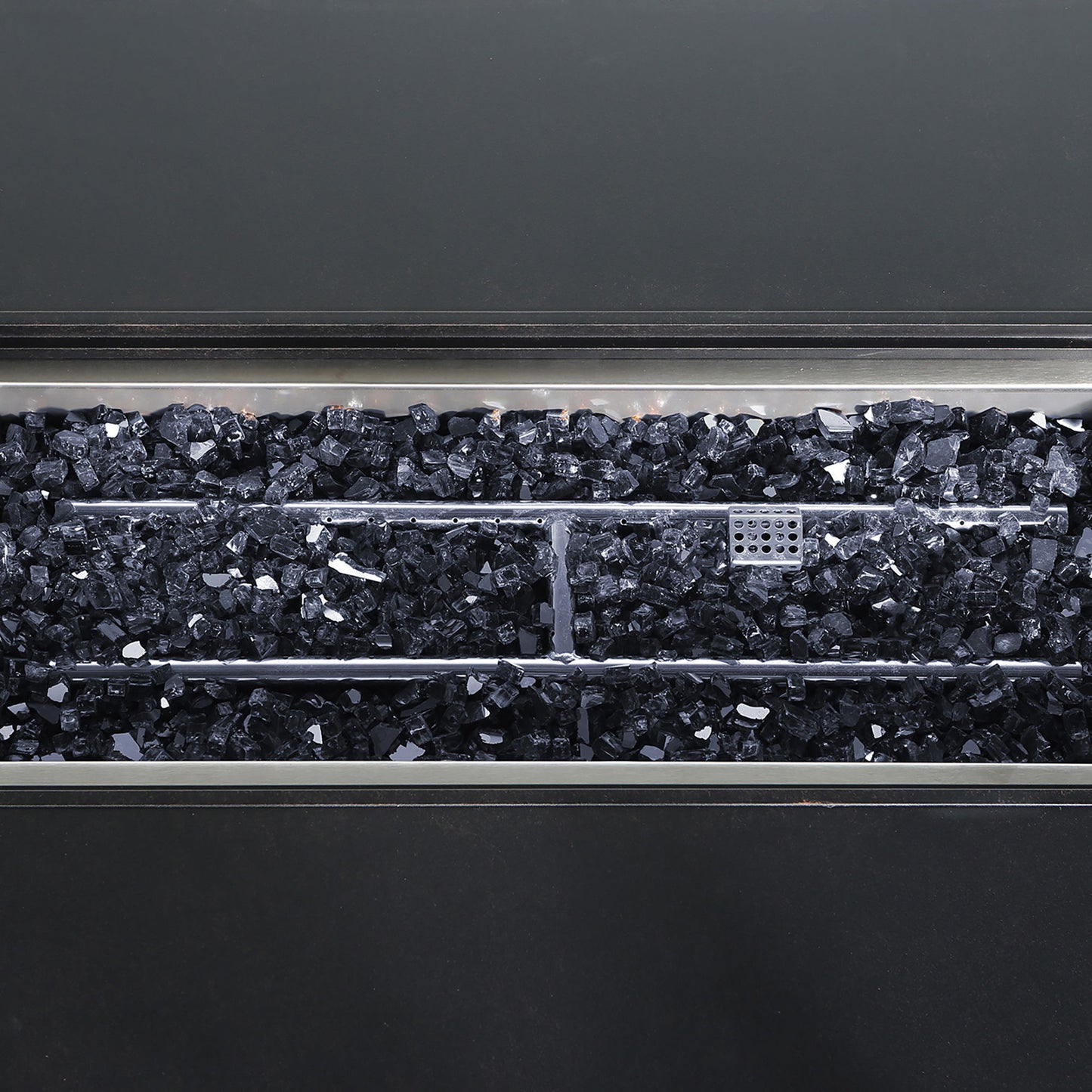 Aluminum Rectangle Fire Table With Fire Glass And Cover - Antique Bronze