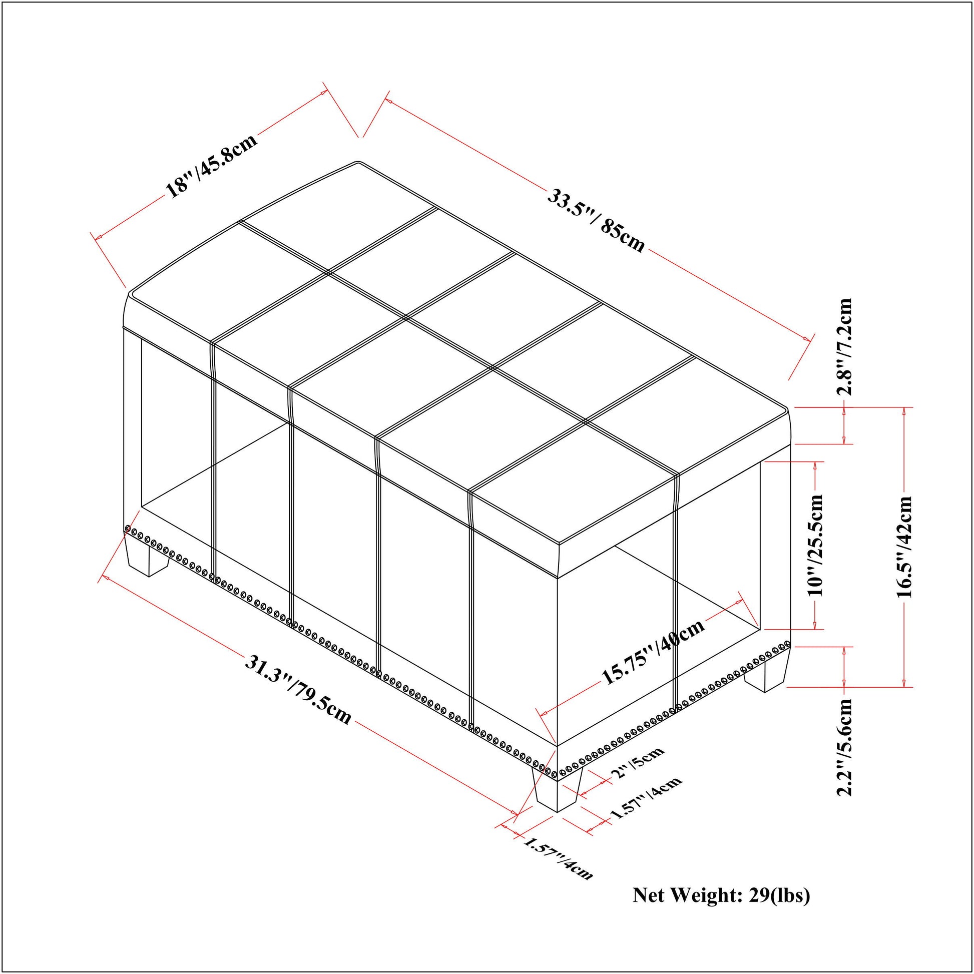 - Dimensions: 33.5" W x 18" D x 16.5" H