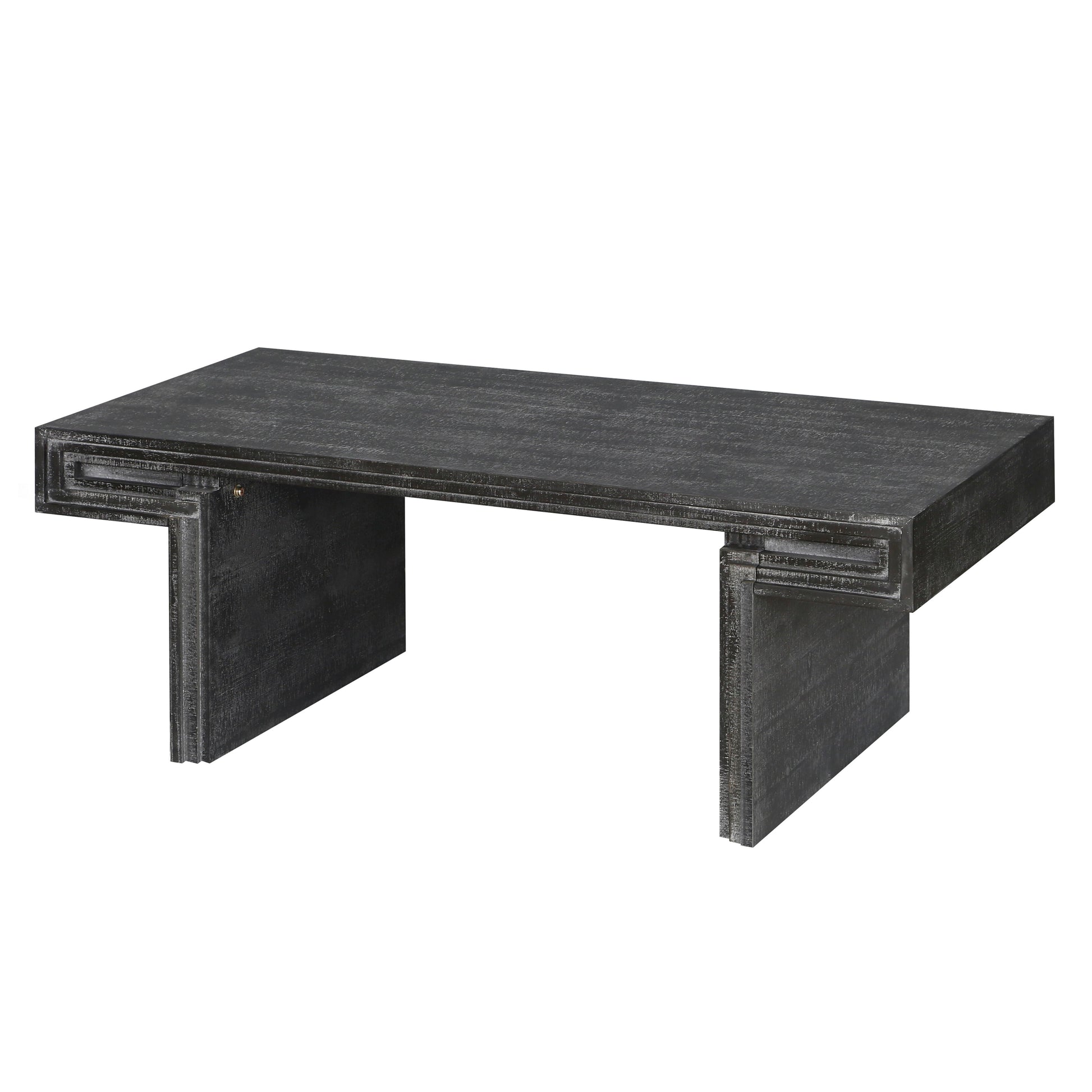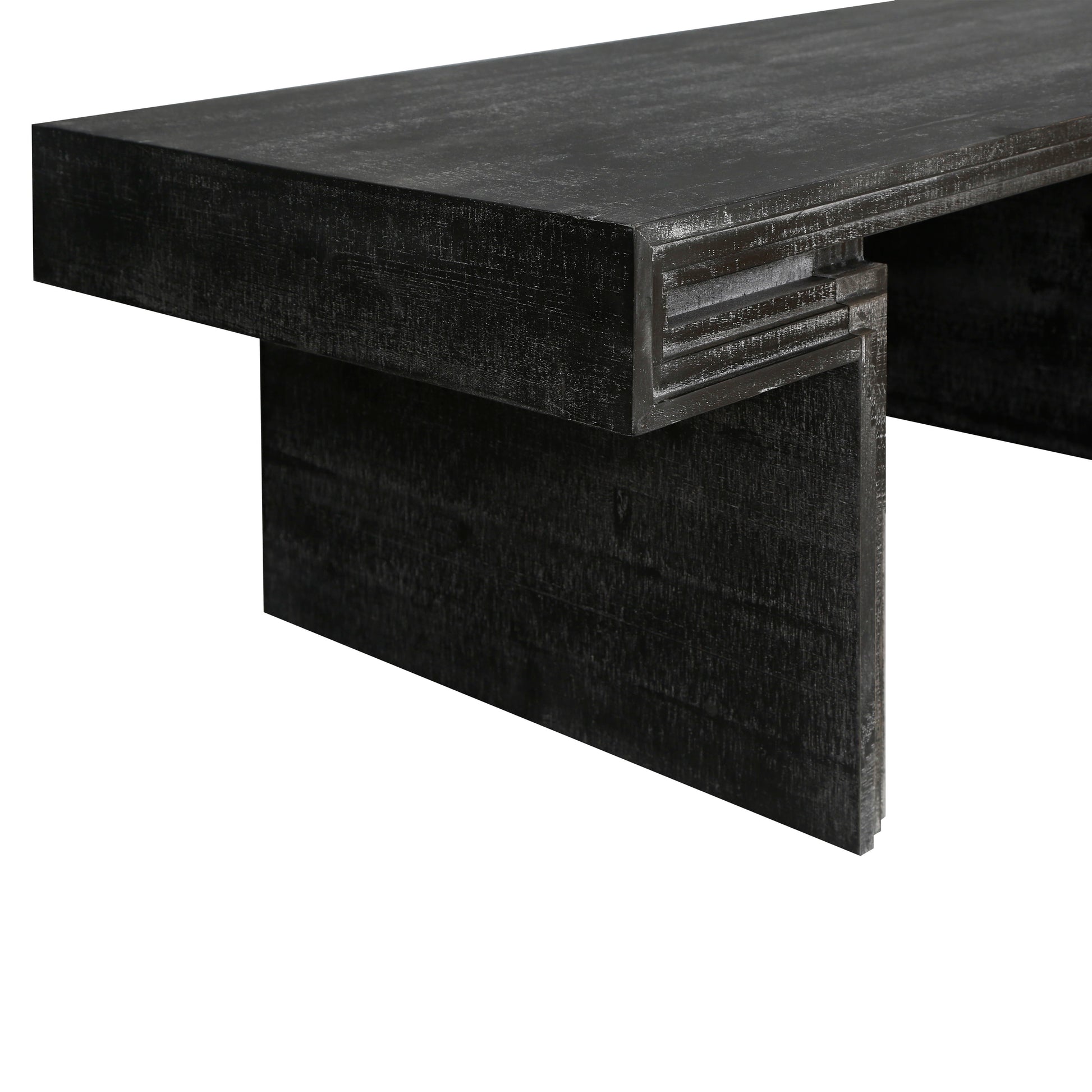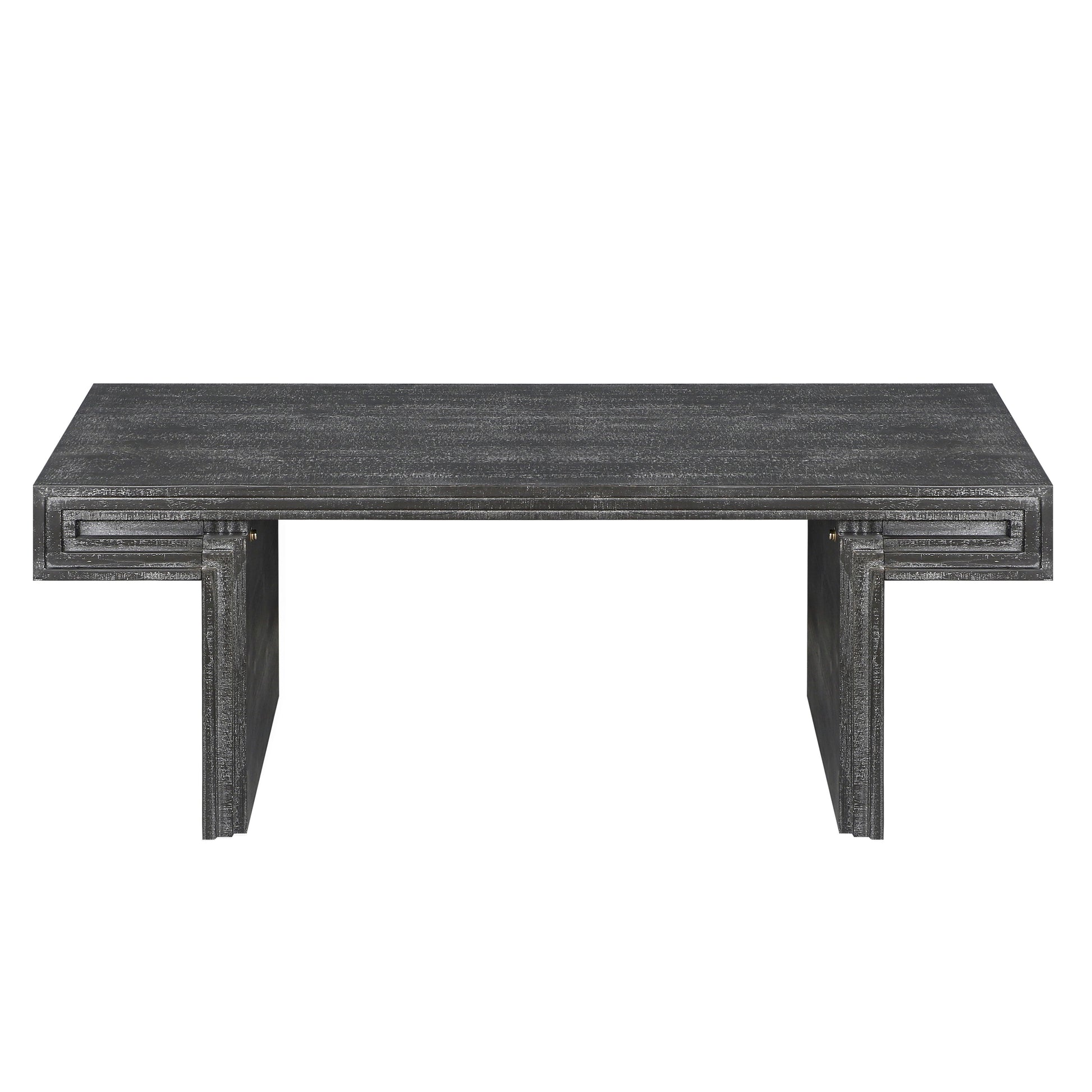 American Vintage Industrial Coffee Table, Premium Reclaimed Wood Texture, Double Tier Structure - Antique Black
