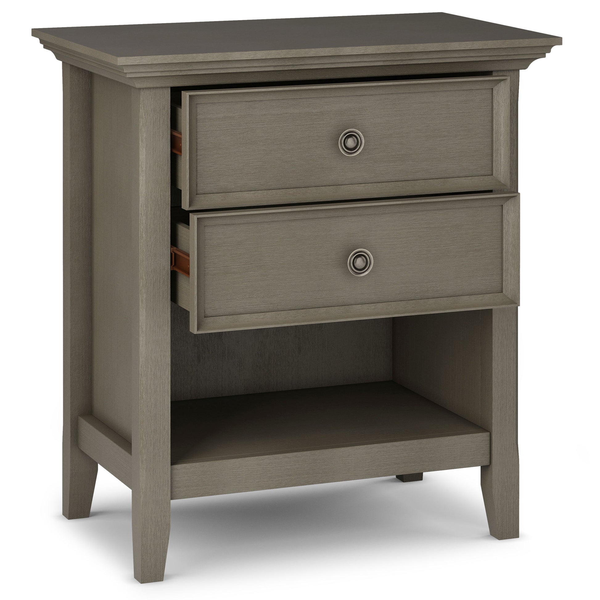 - Features two (2) spacious drawers with metal drawer glides and open bottom storage area