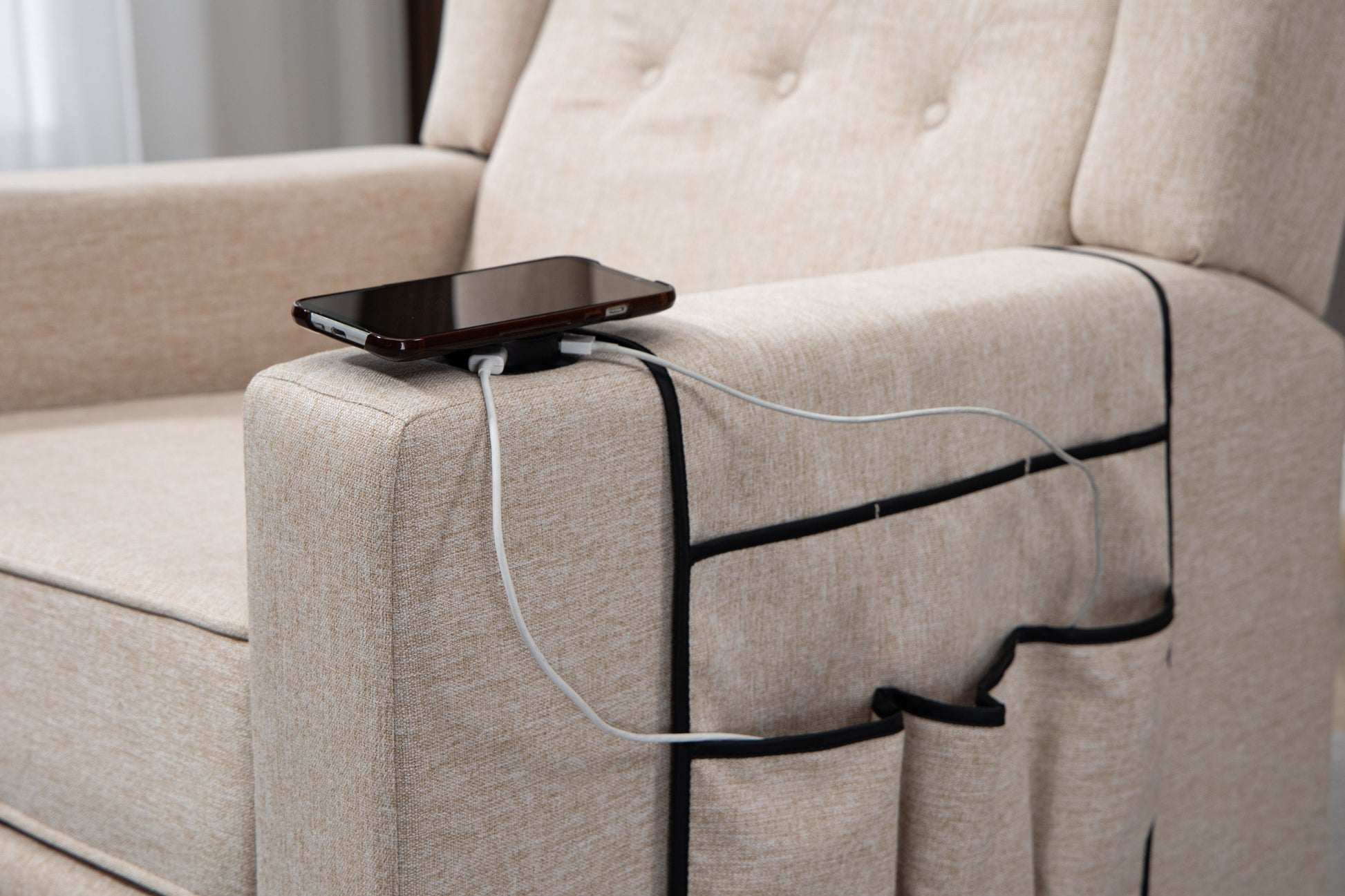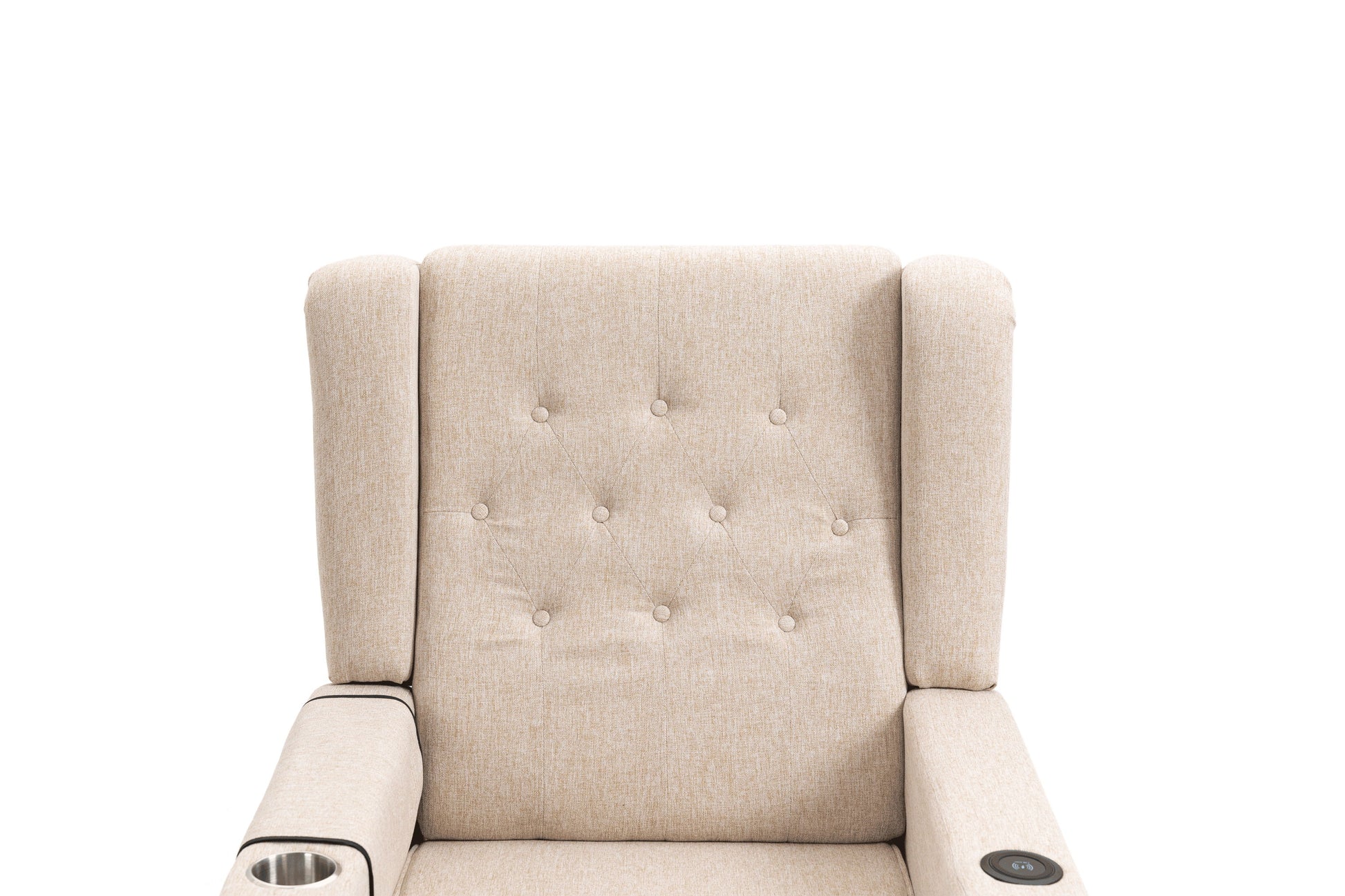 Arm Pushing Recliner Chair, Modern Button Tufted Wingback Push Back Recliner Chair, Living Room Chair Fabric Pushback Manual Single Reclining Sofa Home Theater Seating For Bedroom - Khaki / Yellow