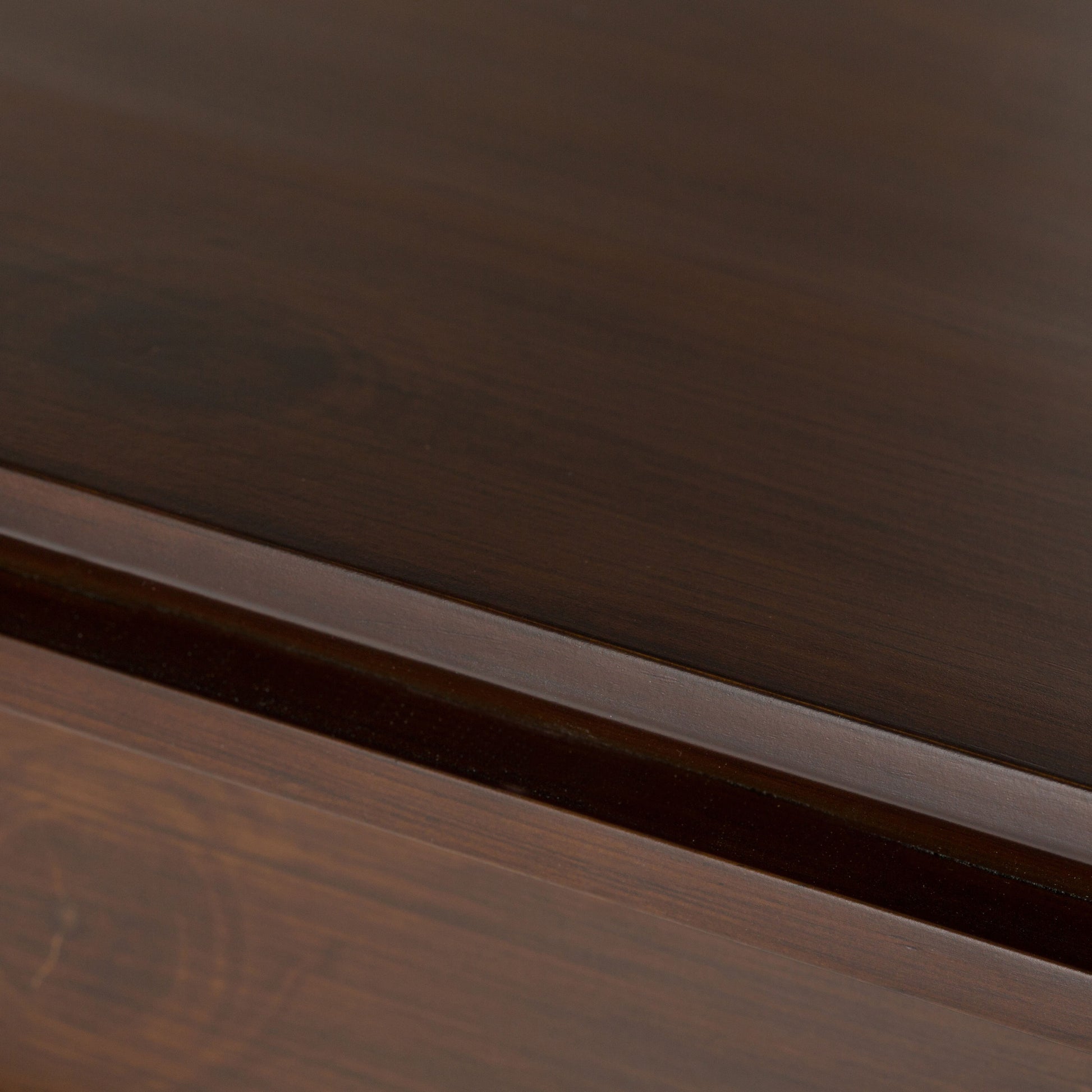 - Hand-finished with a Russet Brown stain and a protective NC lacquer to accentuate and highlight the grain and the uniqueness of each piece of furniture.