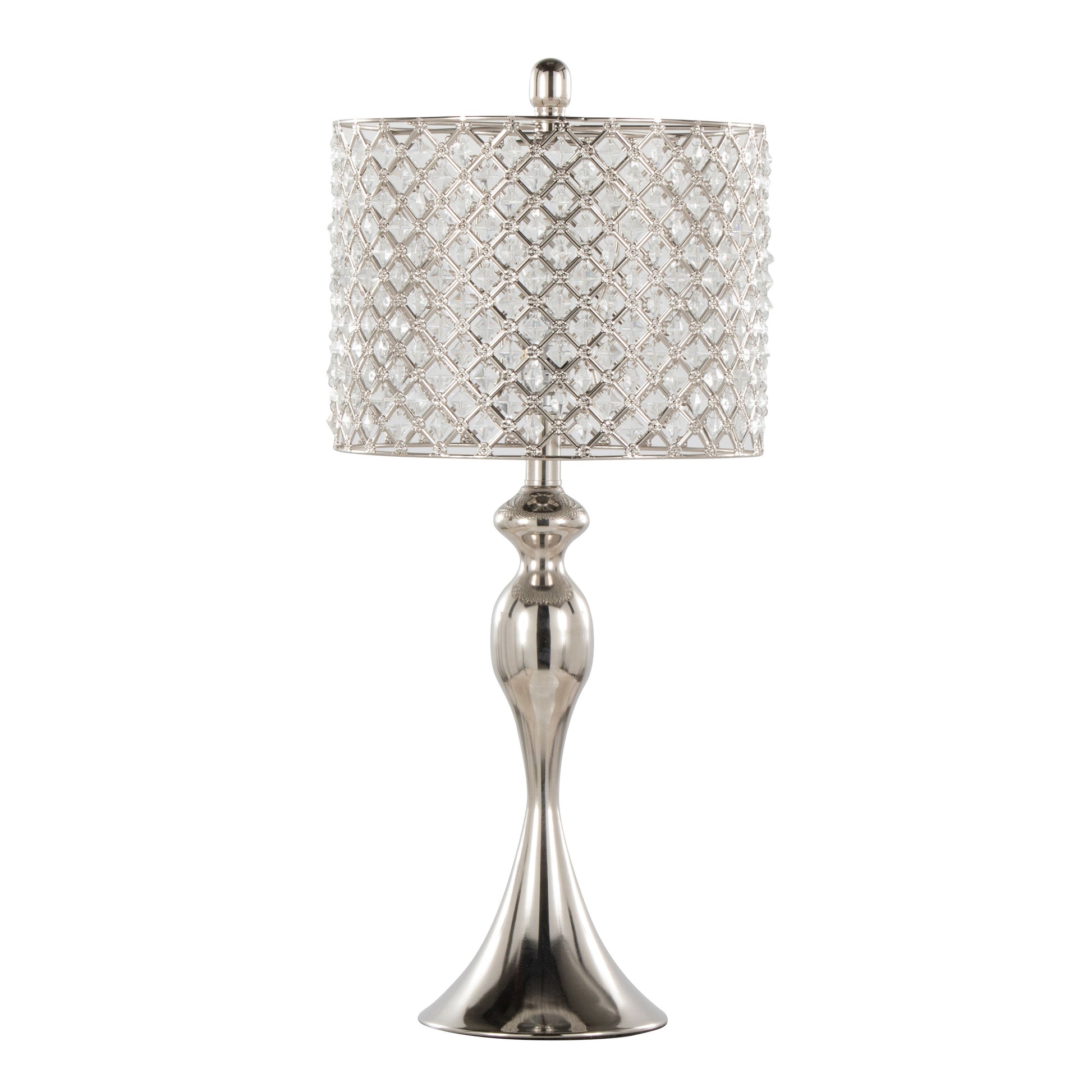 - Double-Layered Shades: Each lamp is topped with elegant double-layered shades that complement its polished nickel finish and square clear K9 crystal accents, offering a luxurious look.