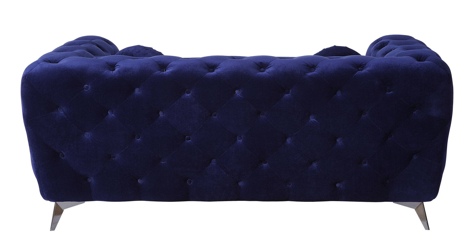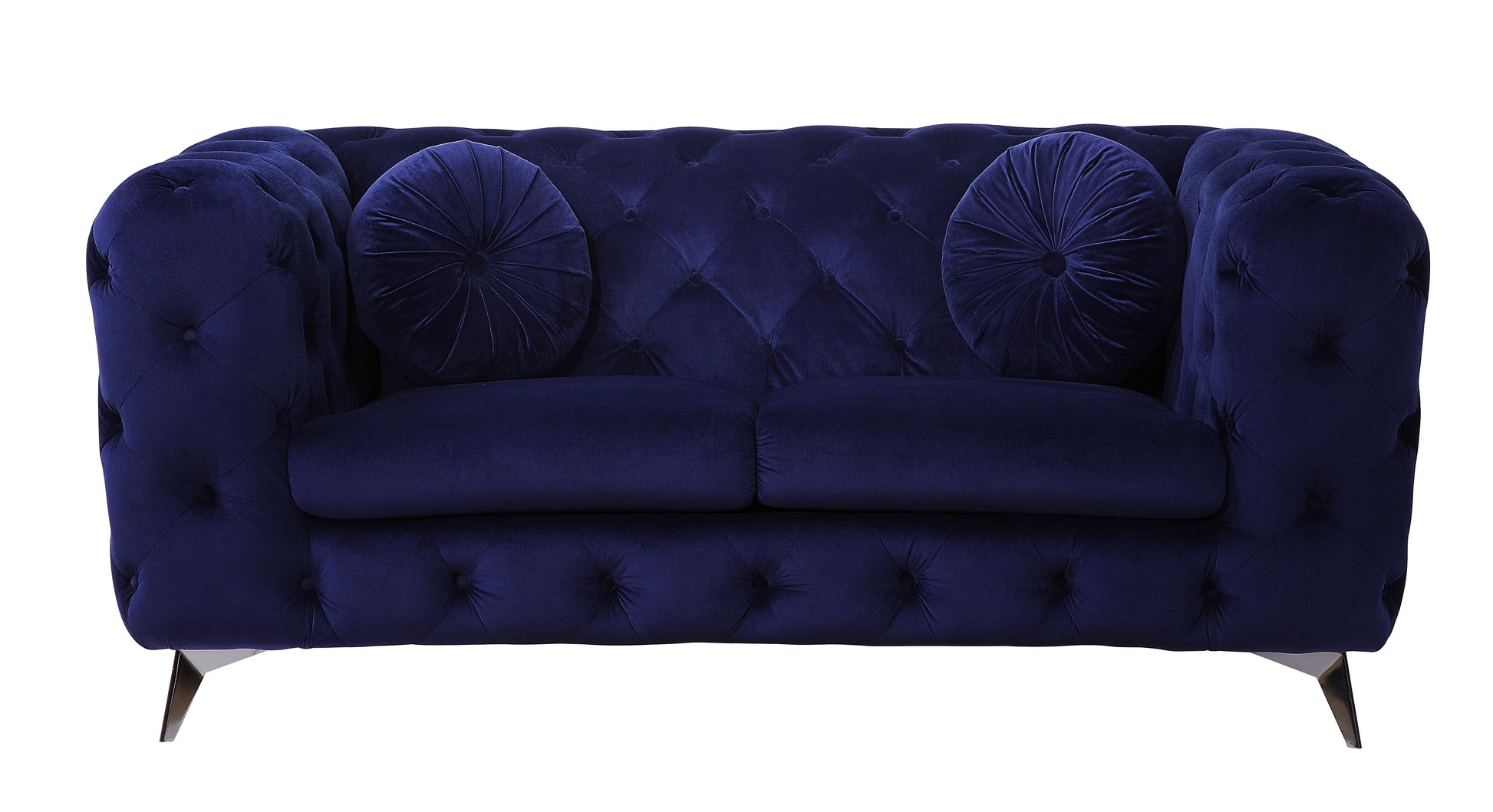 - Comfortable Seating: The Atronia Blue Velvet Loveseat features a pocket coil seat construction with a non-reversible loose seat cushion, providing a comfortable seating experience. The seat cushion measures 23" x 23" x 5"H, offering ample space for relaxation.