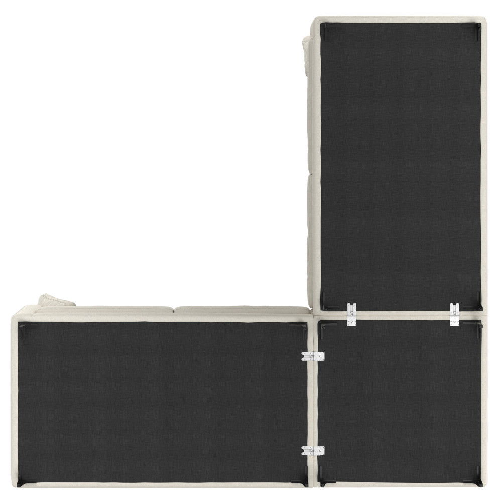 - Easy assembly: Attach the legs to the base of all sofa pieces; turn the sofa pieces right-side up and attach them by sliding the connectors into each other; adjust the levelers on the legs to stabilize the frame (if necessary); then fluff the seat cushions, back cushions, and throw pillows before placing them.