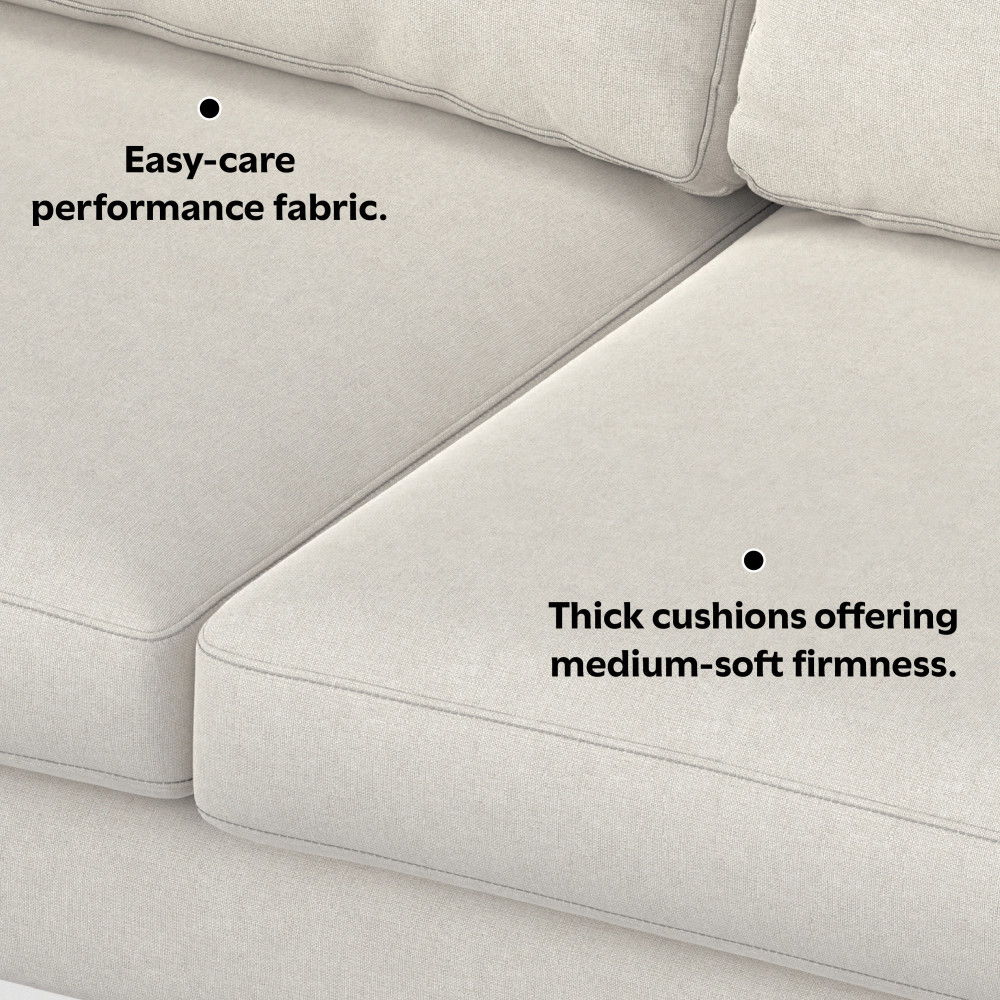 - Upholstered in Cream Performance Fabric, a soft yet durable, easy-care fabric made with 100% recycled polyester and protected with water-repellent and fire-resistant coatings; this eco-friendly fabric meets the Global Recycled Standard and OEKO-TEX® STANDARD 100.