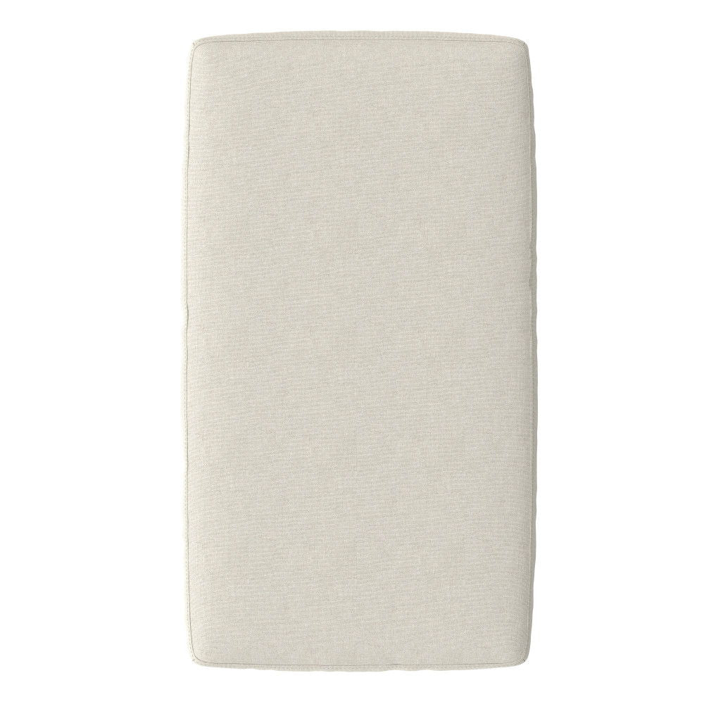 - Upholstered in Cream Performance Fabric, a soft yet durable, easy-care fabric made with 100% recycled polyester and protected with water-repellent and fire-resistant coatings; this eco-friendly fabric meets the Global Recycled Standard and OEKO-TEX® STANDARD 100.