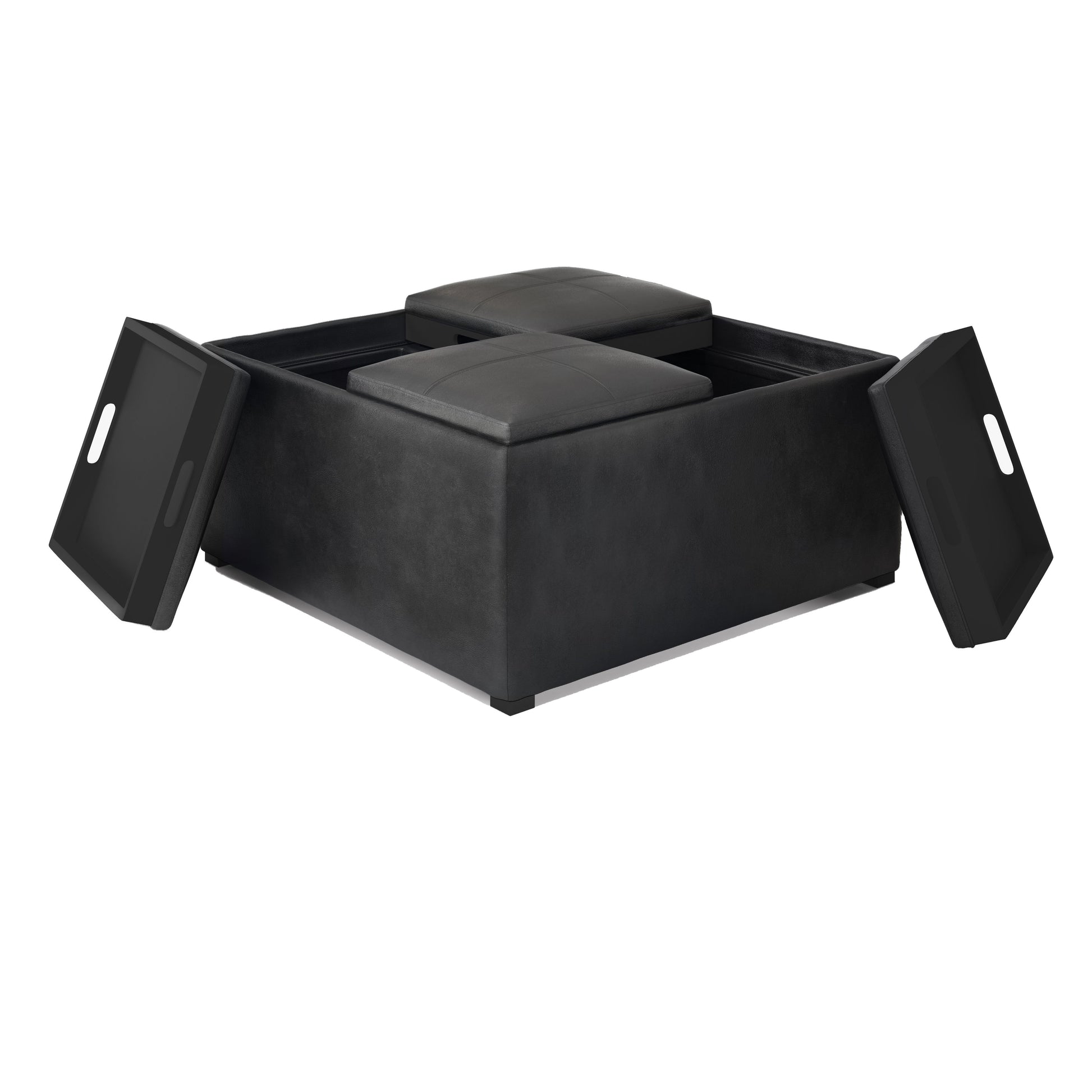 Avalon - Square Coffee Table Storage Ottoman - Distressed Black