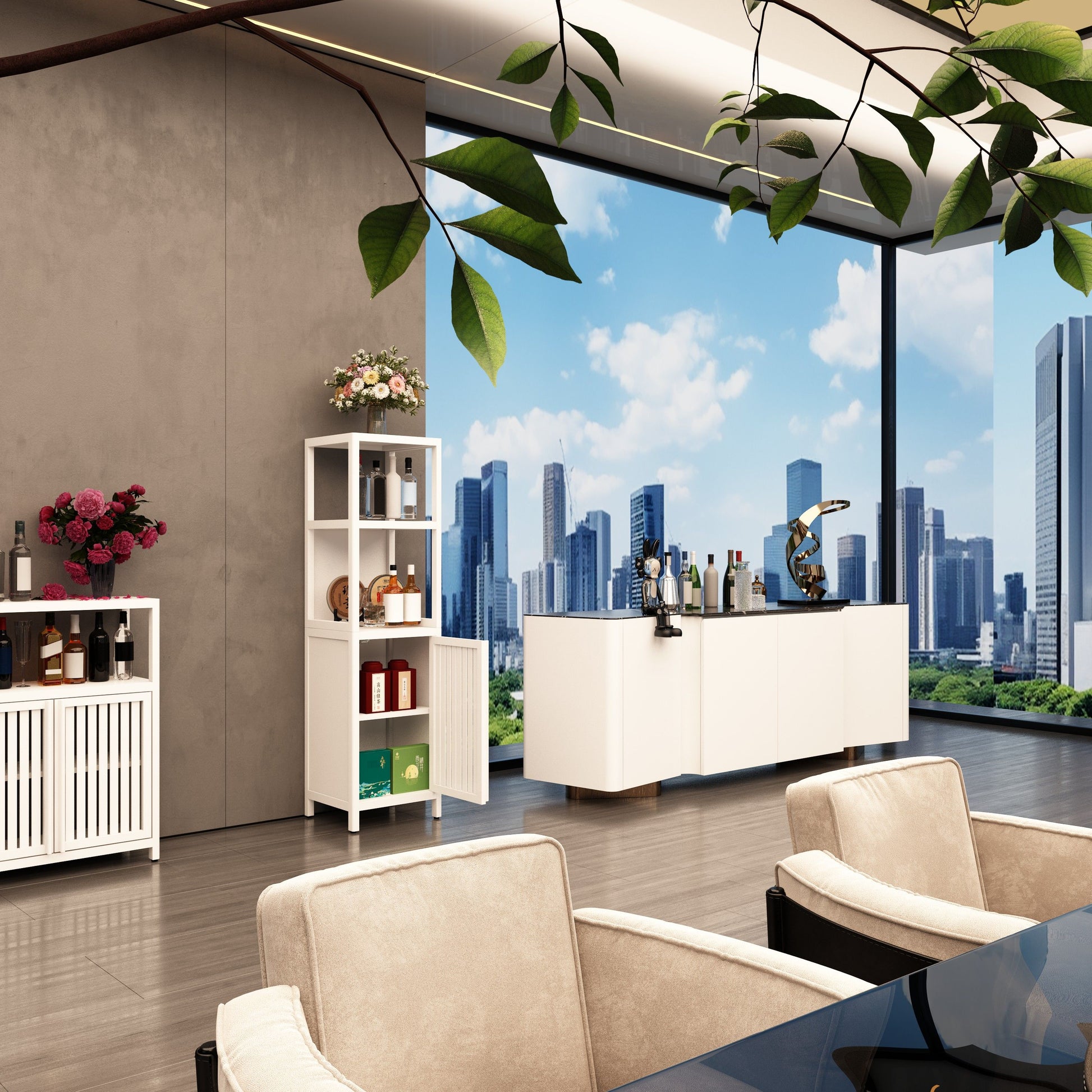 - Practical Storage Space: Maximize your space with 2 open shelves and a cabinet with doors, perfect for small corners.