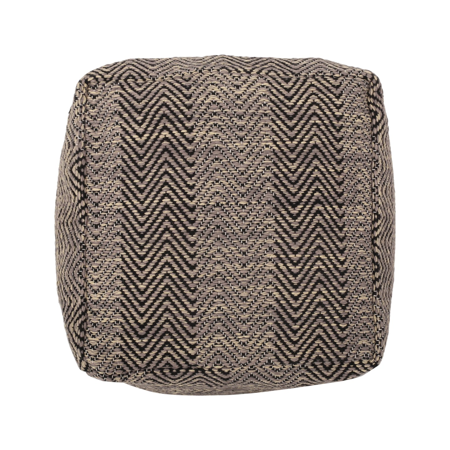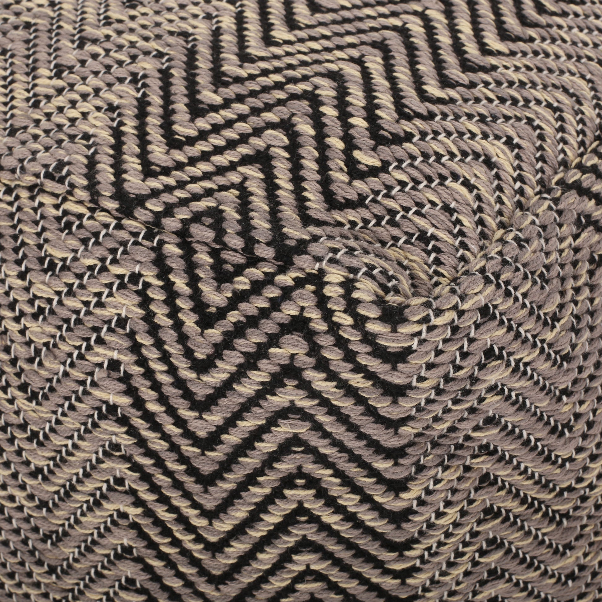 Barracuda - Handcrafted Cotton Pouf With Chevron Pattern - Brown / Beige