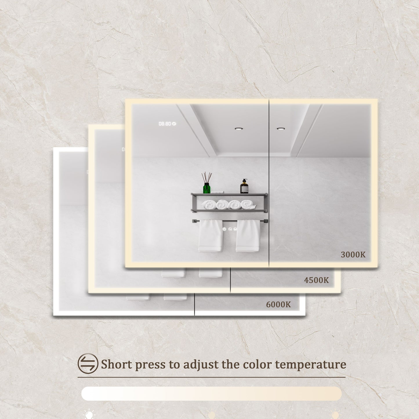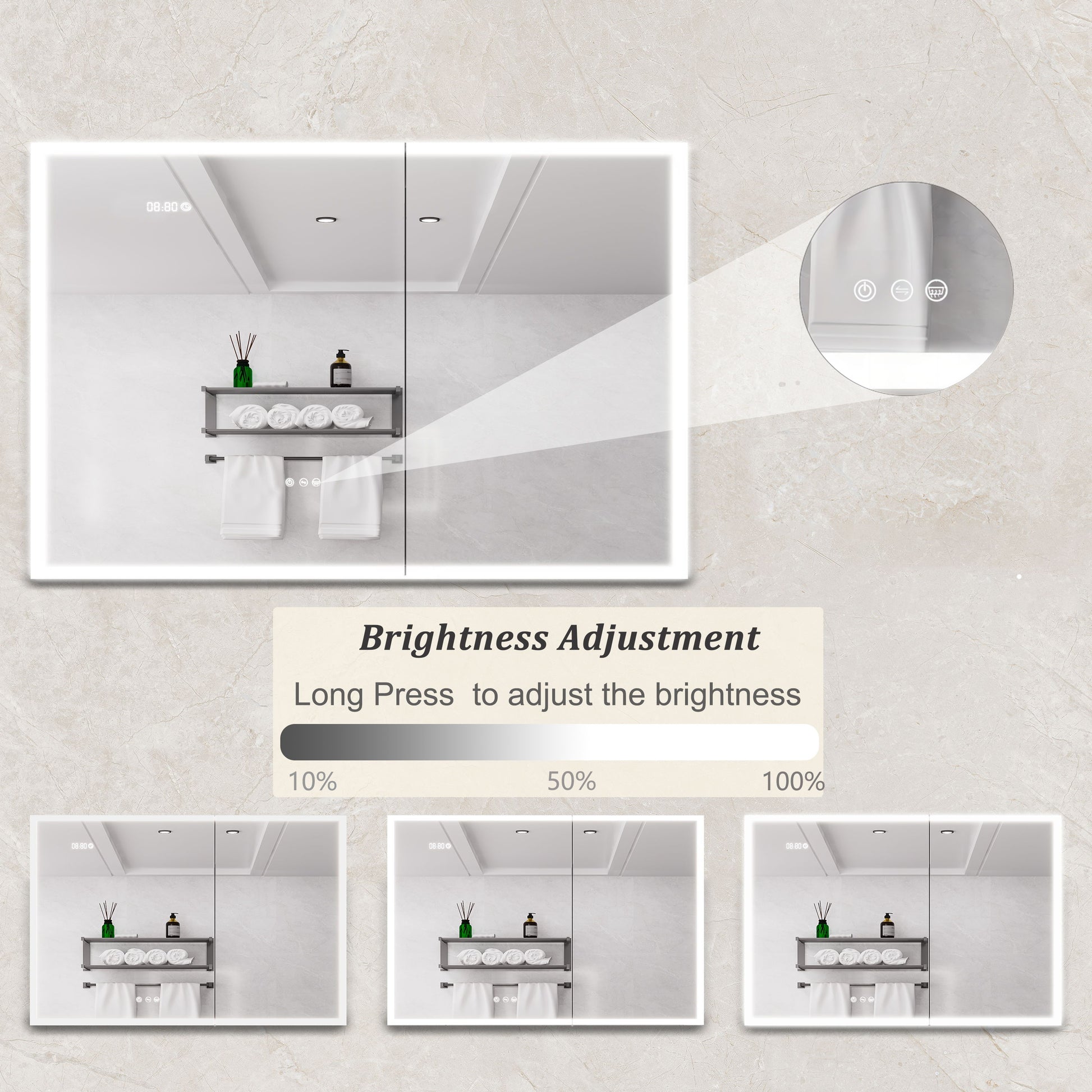 - Touch Switch Functionality: Control main light, anti-fog film, adjust brightness, and color temperature.