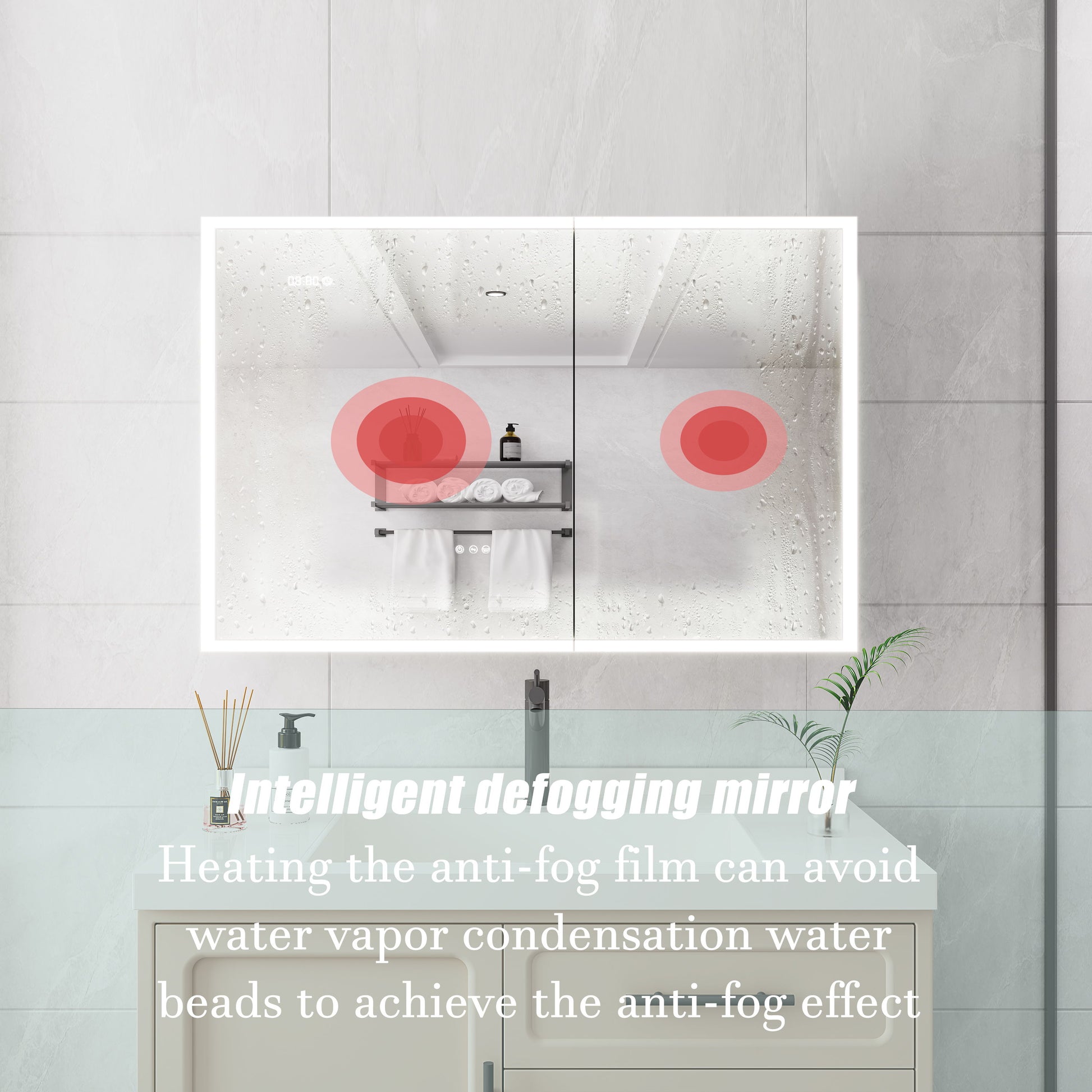 Bathroom Medicine Cabinet With Lights, LED Medicine Cabinet With Mirror, Double Door Lighted Medicine Cabinet & Defogger, Dimmer, Clock & Temp Display, 2 Outlets & USB Ports - Silver
