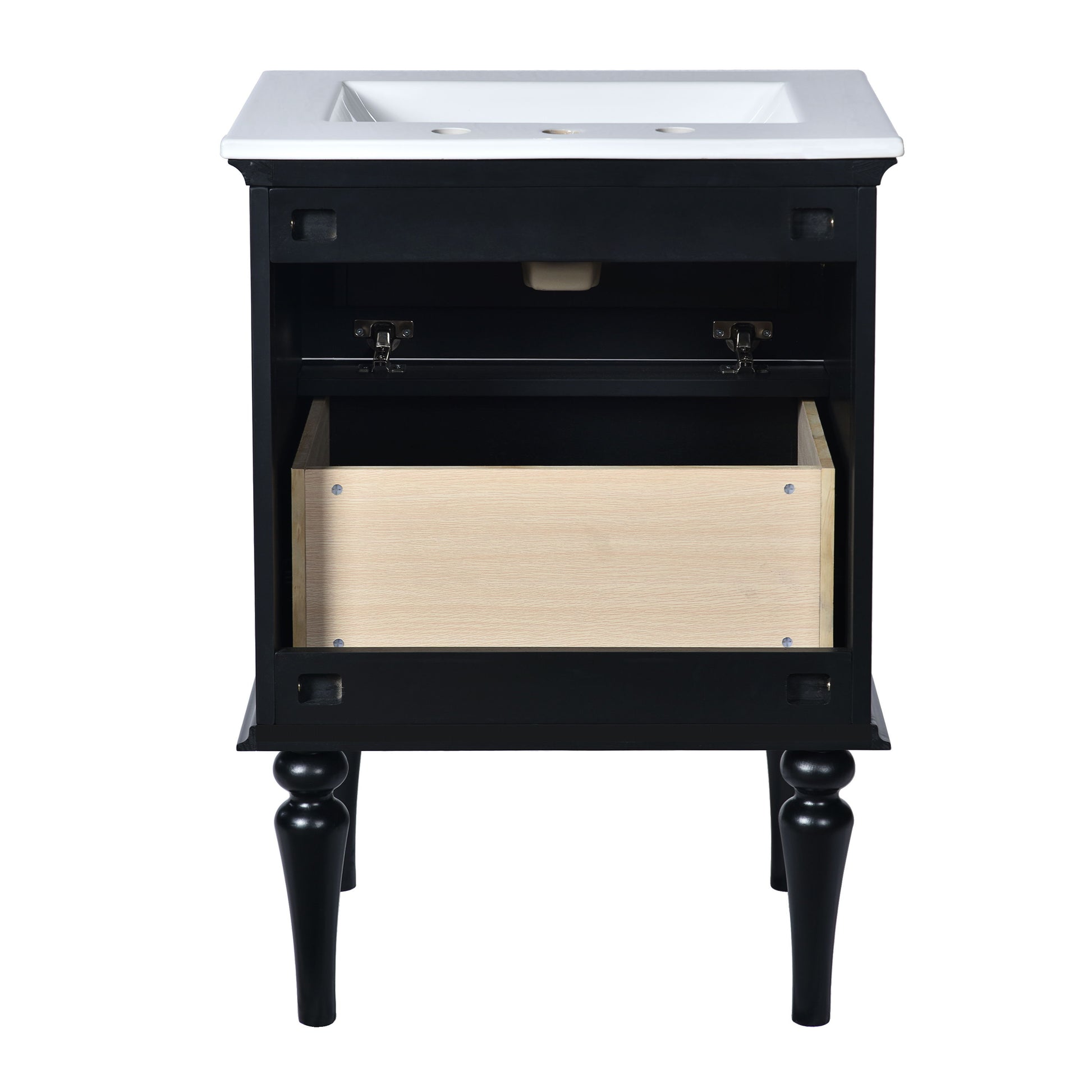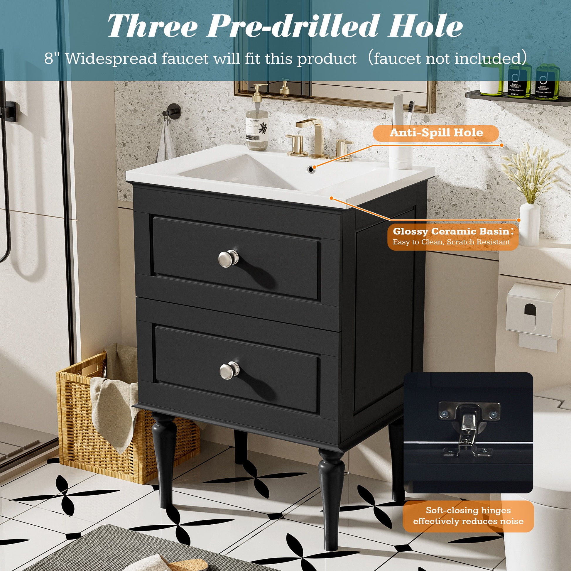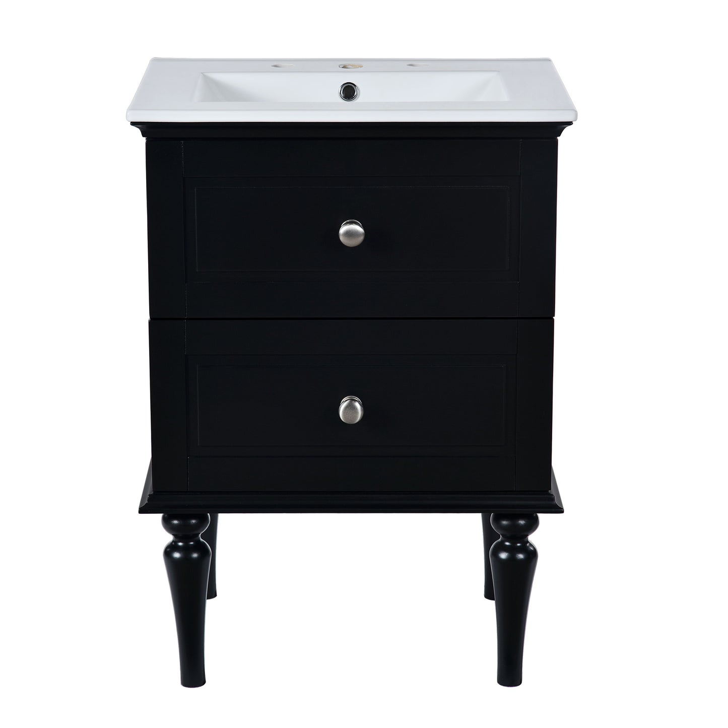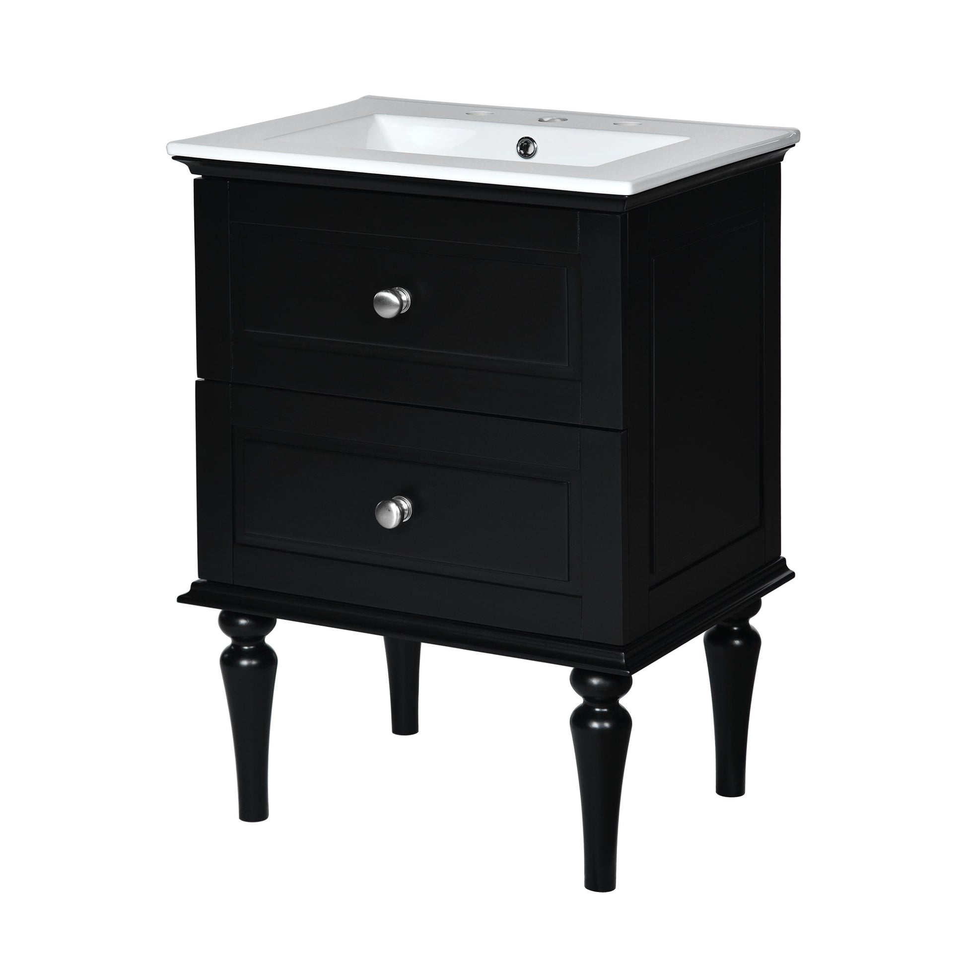 Bathroom Vanity Cabinet With Ceramic Sink Combo Set, Frame Modern Bathroom Storage Cabinet With 2 Drawers - Black