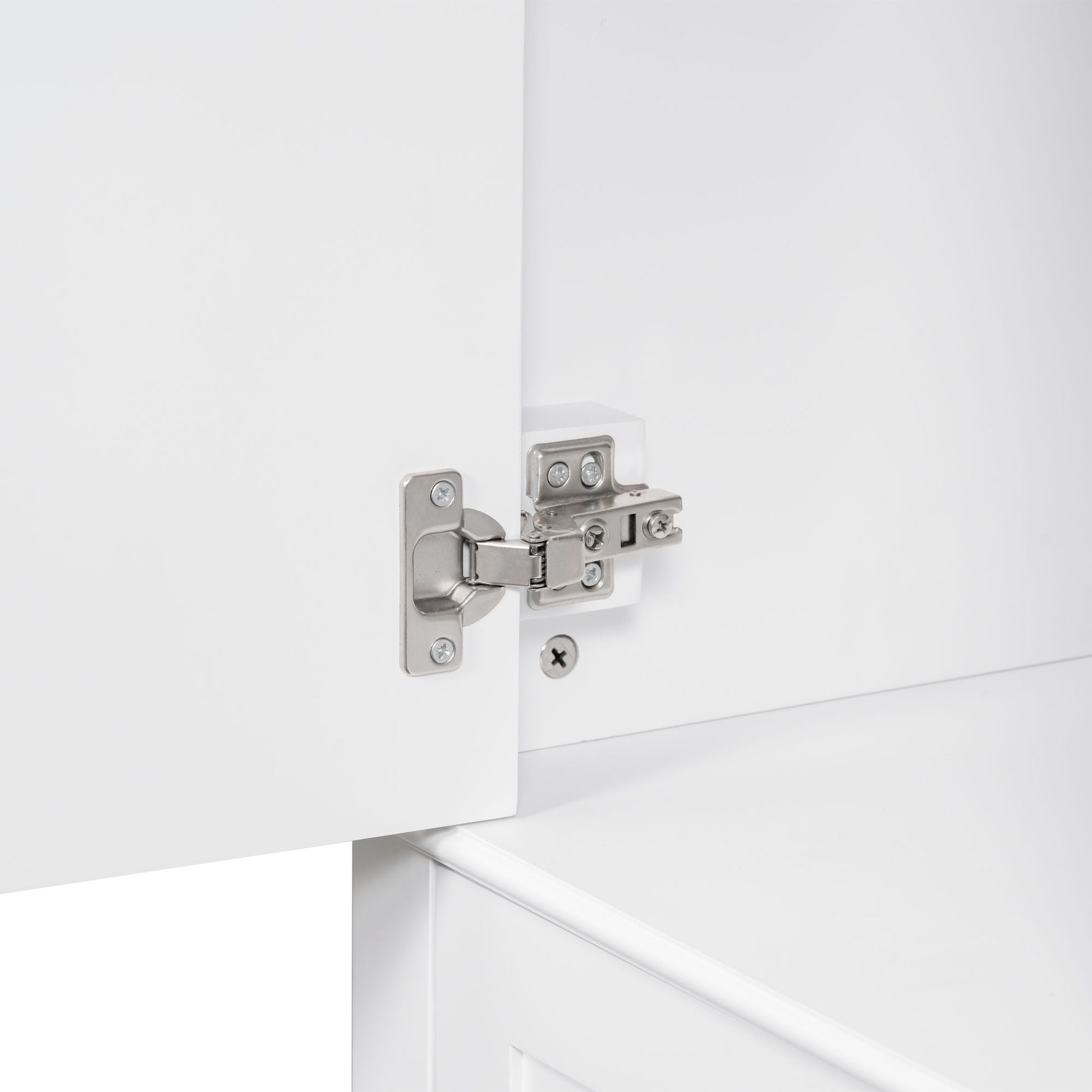 - Modern Design: Features a white cabinet with a white countertop, sleek lines, and silver handles for a contemporary look.