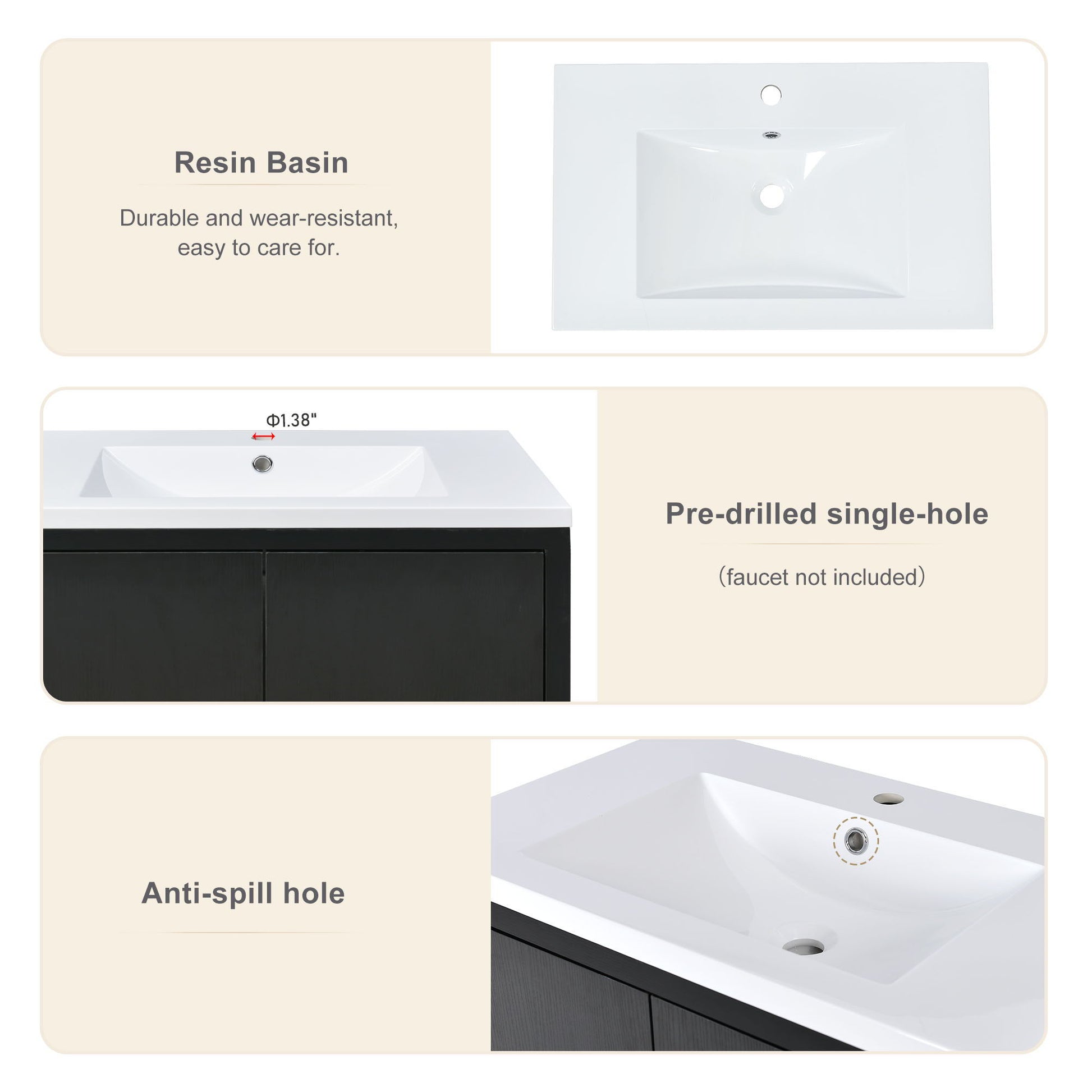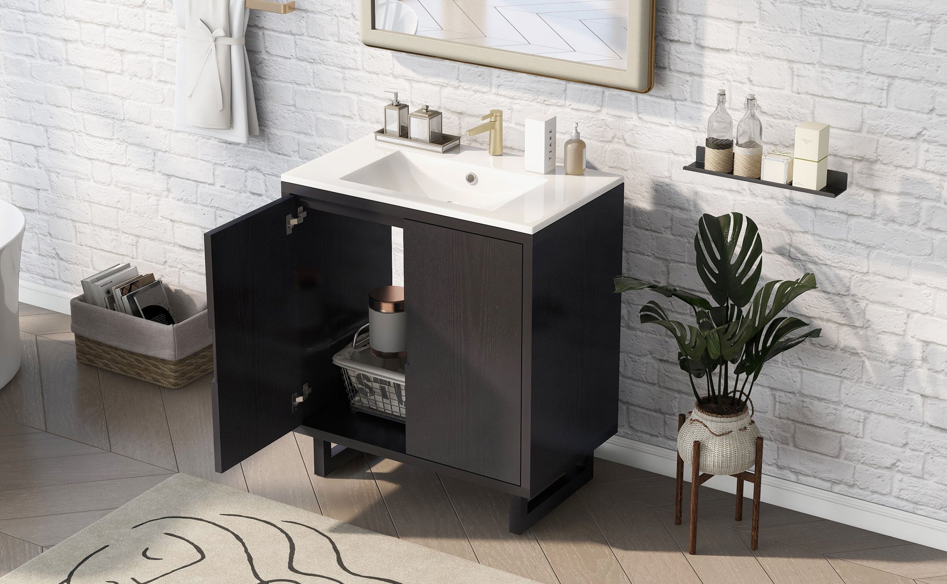 Bathroom Vanity Set With Sink, Combo Cabinet, Bathroom Storage Cabinet, Solid Wood Frame - Black