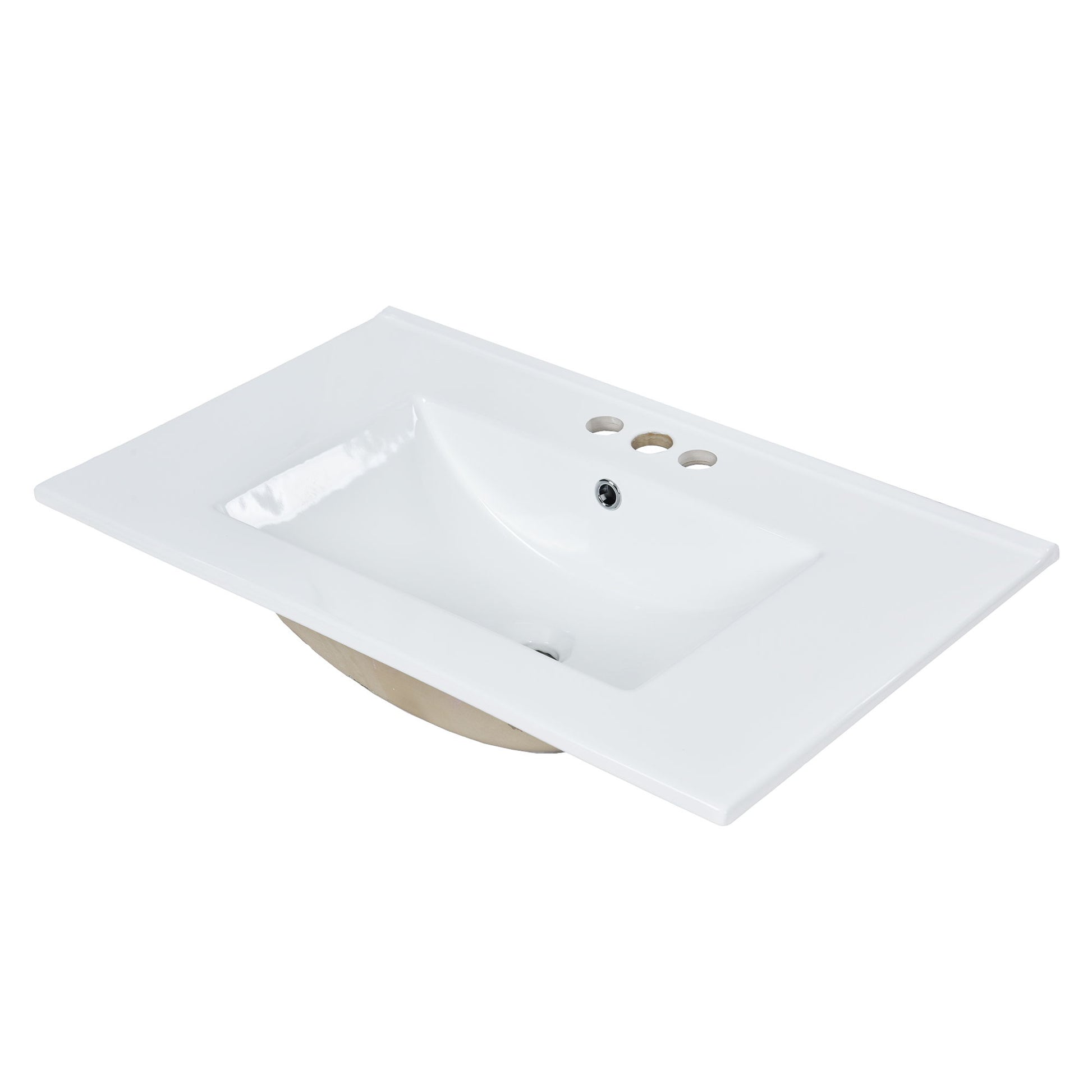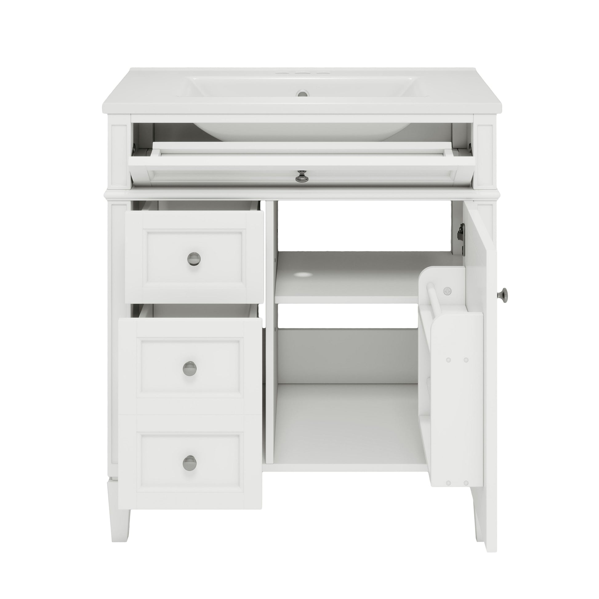 Bathroom Vanity & Top Sink, Modern Bathroom Storage Cabinet, 2 Drawers And A Tip-Out Drawer, Single Sink Bathroom Vanity - White