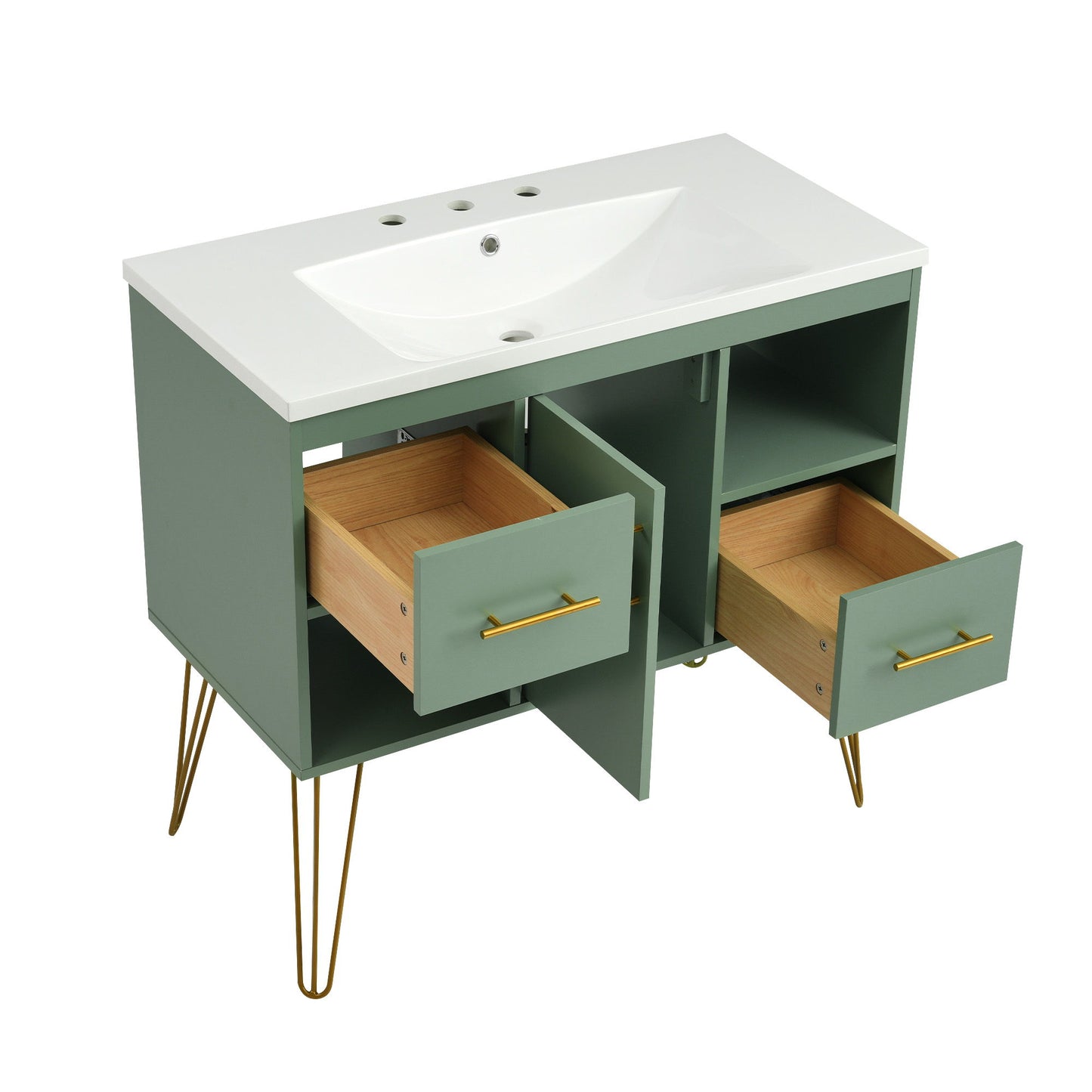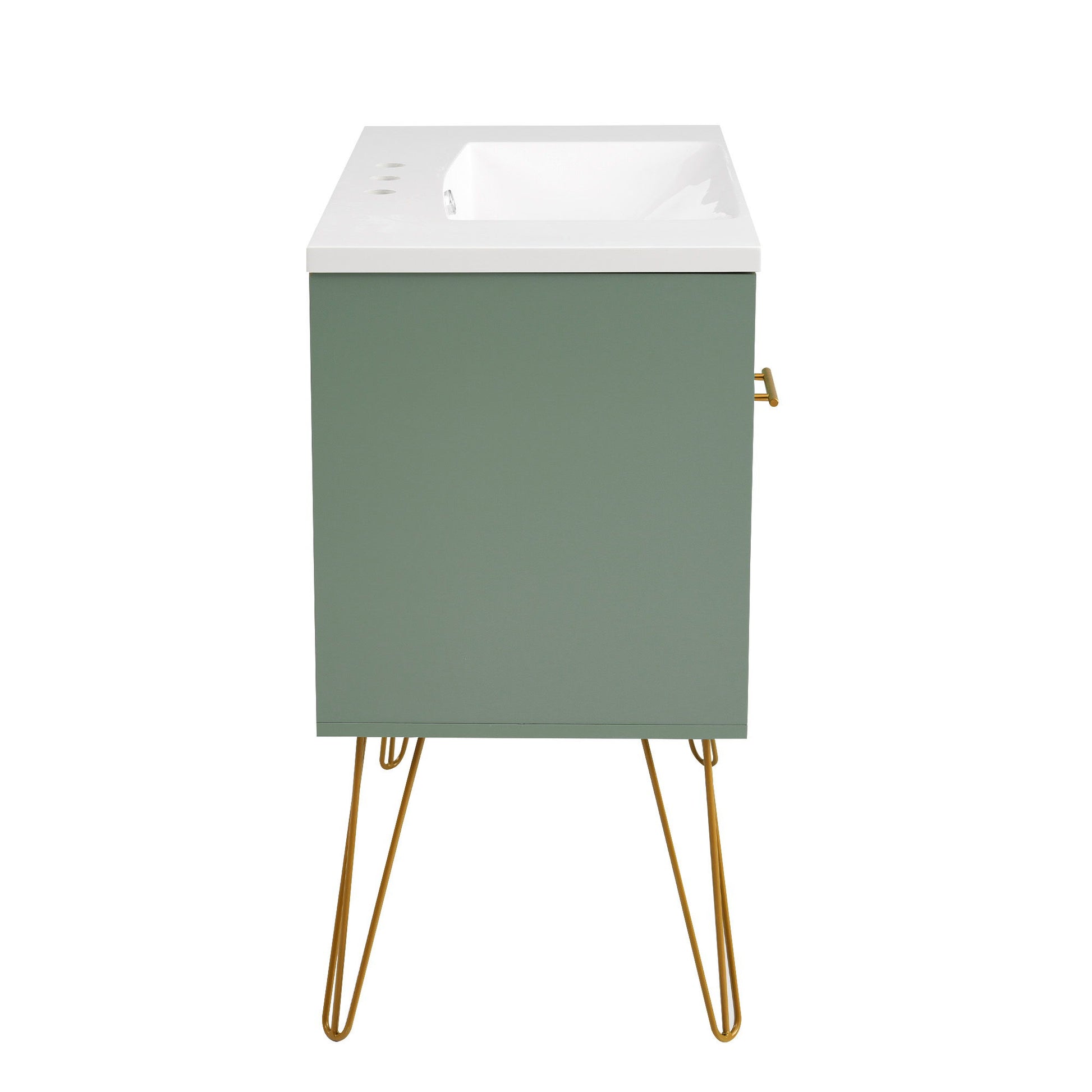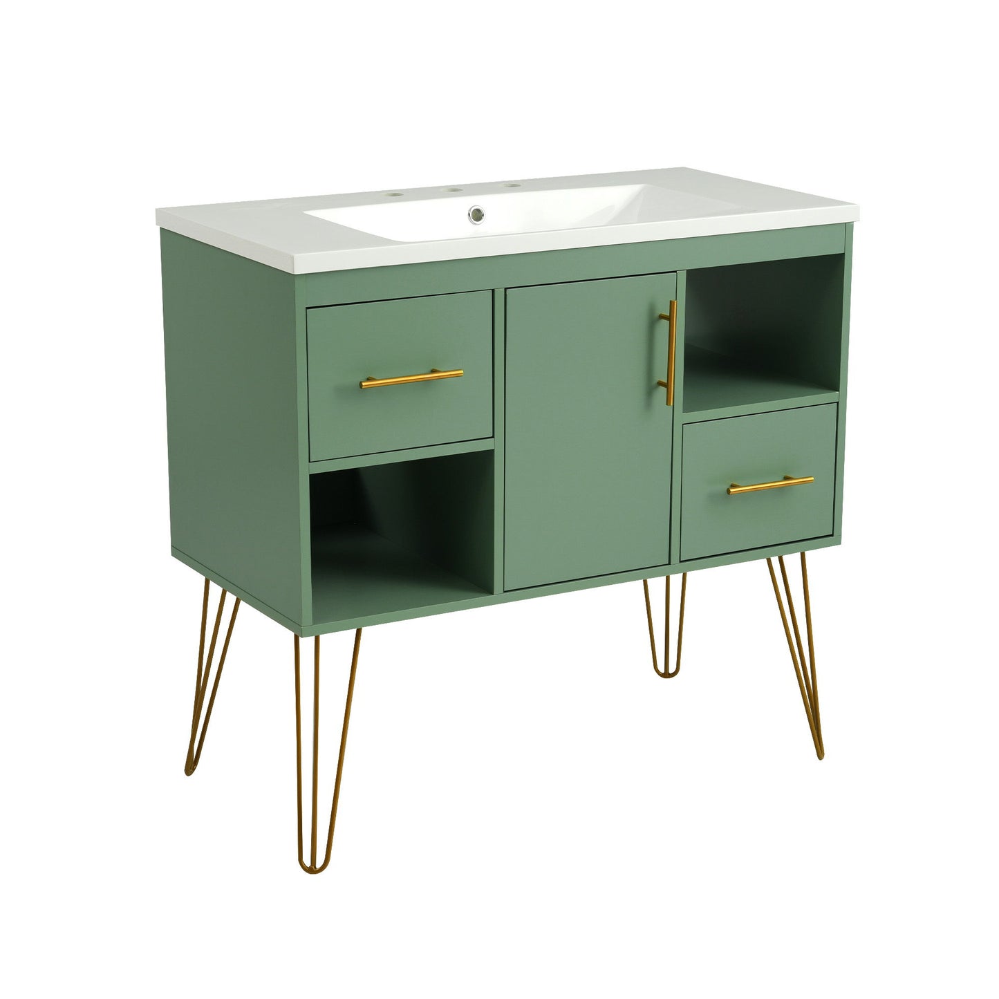Bathroom Vanity With Resin Sink Combo Set, Modern Freestanding Single Bathroom Cabinet With 2 Drawers & 2 Storage Compartments, Storage Cabinet For Bathroom, Frame Vanity Set - Green