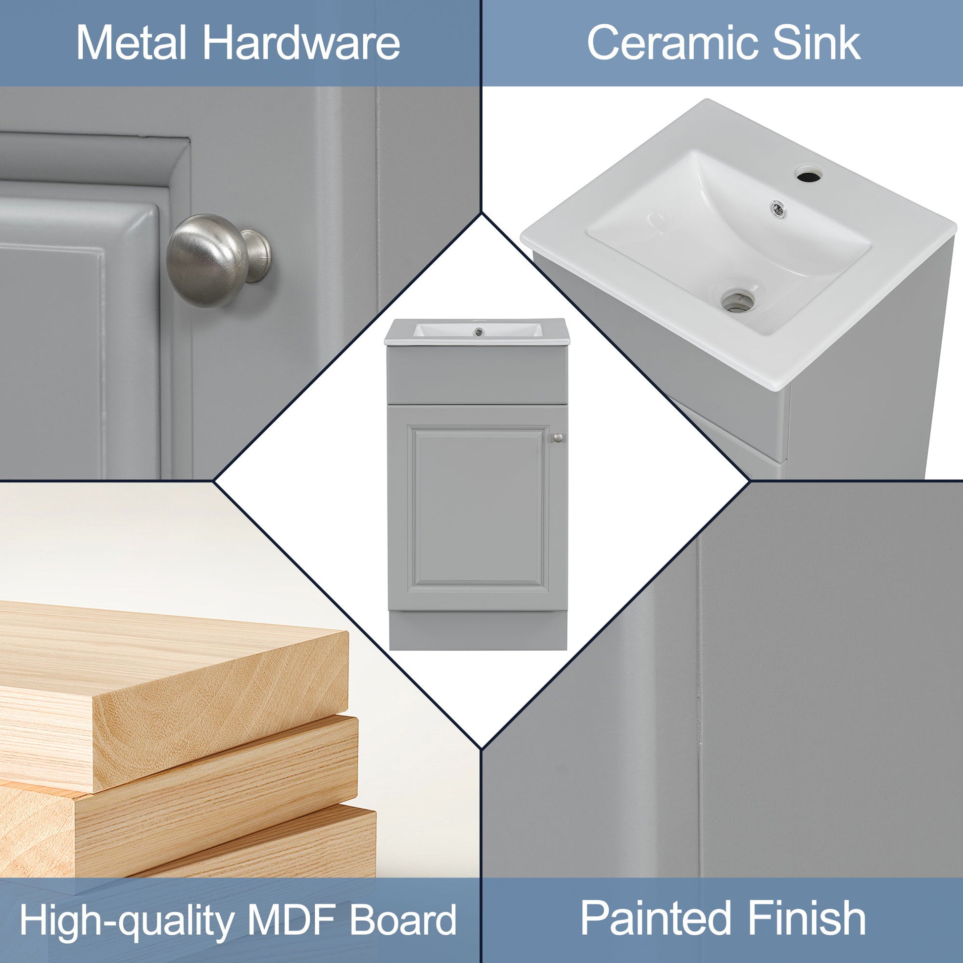 Bathroom Vanity With Sink, Vanity Cabinet With Door Shelf And Adjustable Shelf - Gray
