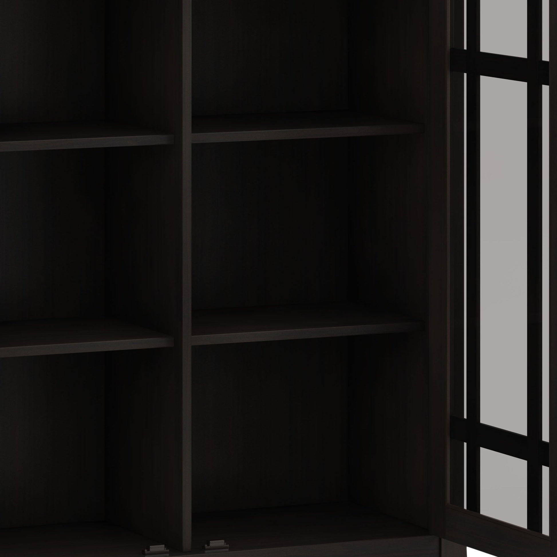 - Features 2 tempered glass doors that open to 4 adjustable shelves for versatile storage