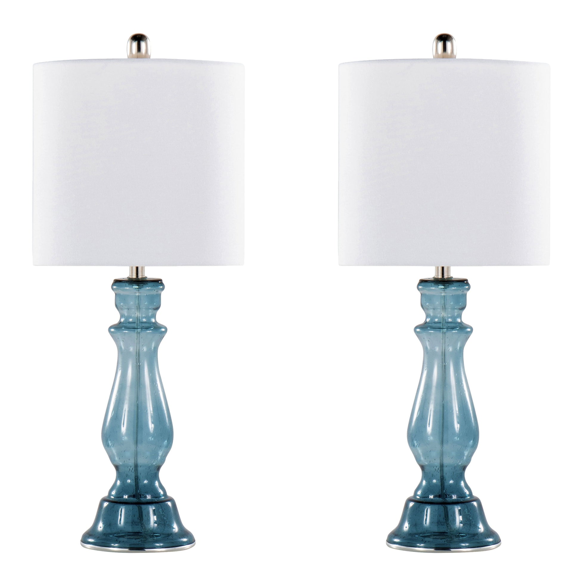 Bishop - Contemporary Clear Angel Table Lamp (Set of 2) - Blue / Polished Nickel / White