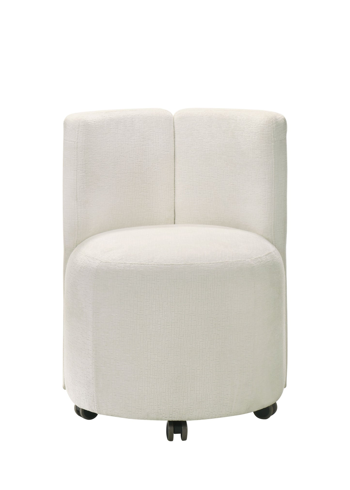 - Chair Specifications: The upholstered side chairs feature a seat width and depth of 20", a seat height of 19", with a foam density of D20/D22, and 5 wheels for easy movement. They support a weight capacity of 220lbs.