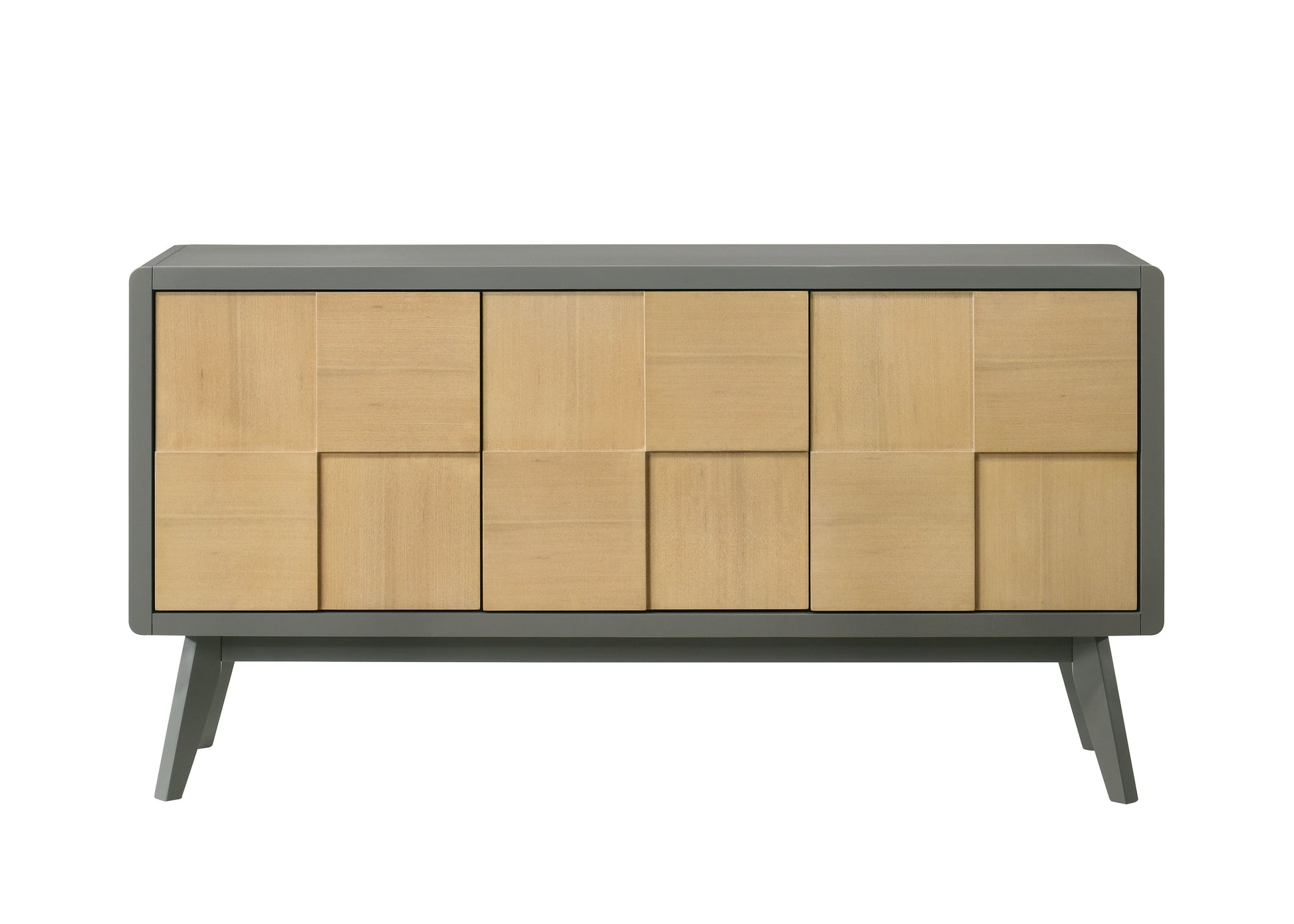 - Server Features: The side server boasts a 2-tone finish with KD legs, wood, composite wood, and veneer construction. It includes three doors with shelves and a weight limit of 100lbs on top and 60lbs per shelf.