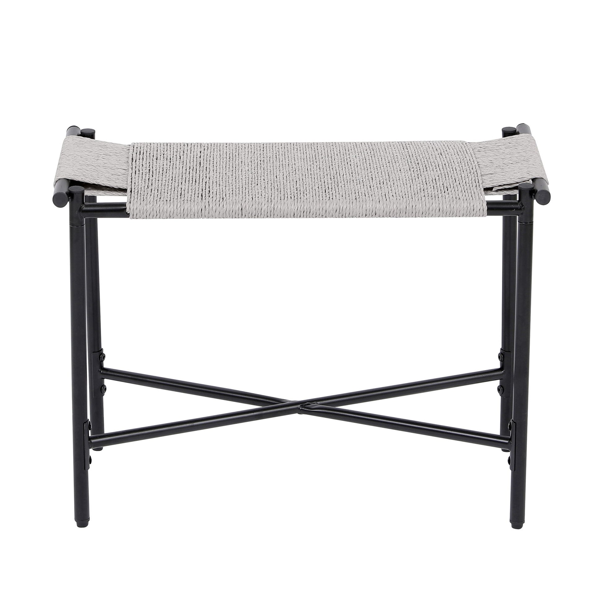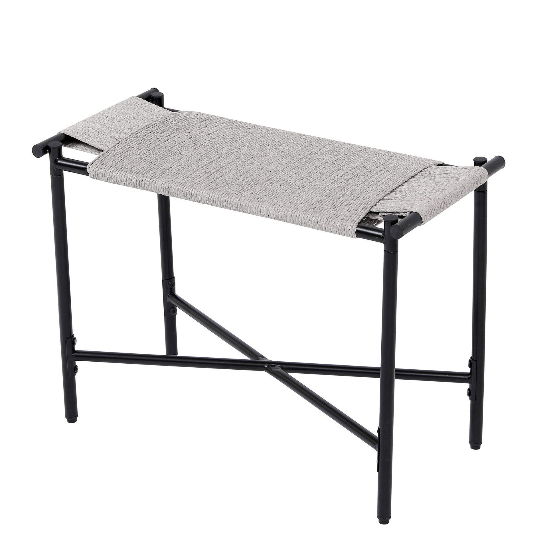Boho Hand Woven Entryway Ottoman Vanity Chair Footrest Stool For Living Room Sofas - Gray