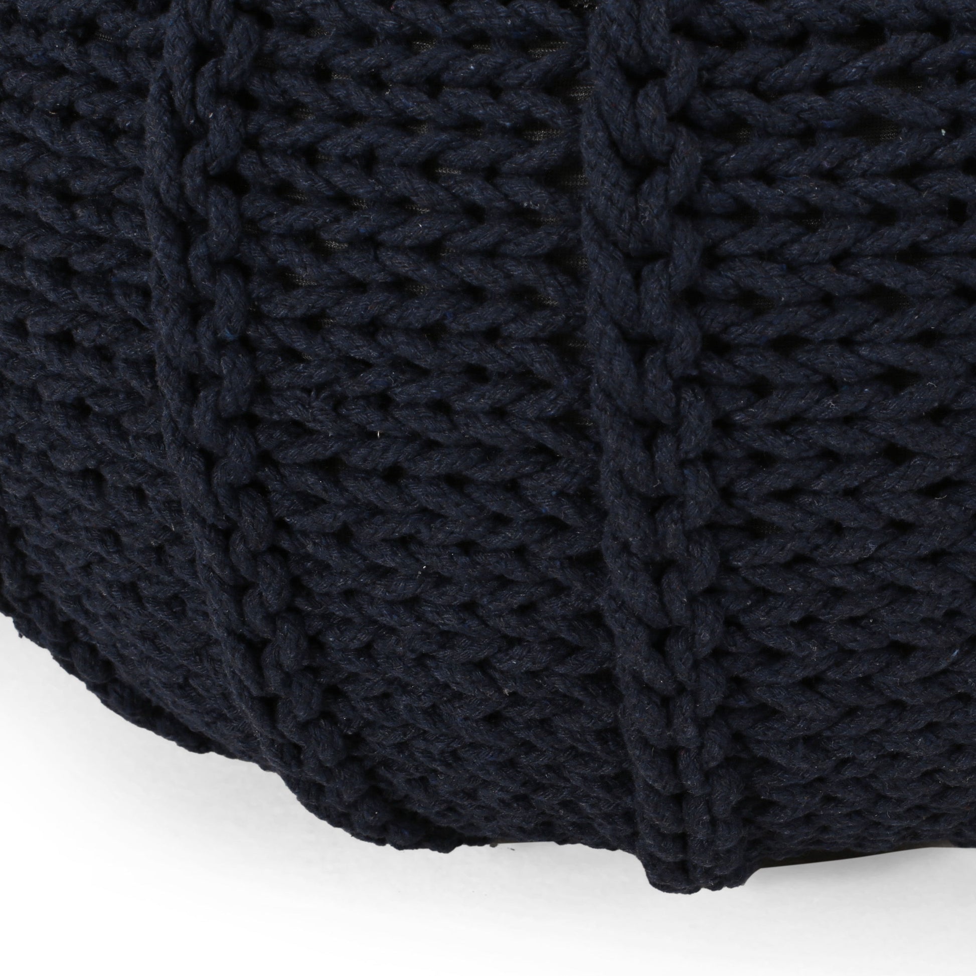 Bordeaux - Knitted Cotton Round Pouf Ottoman And Floor Cushion - Dark Blue