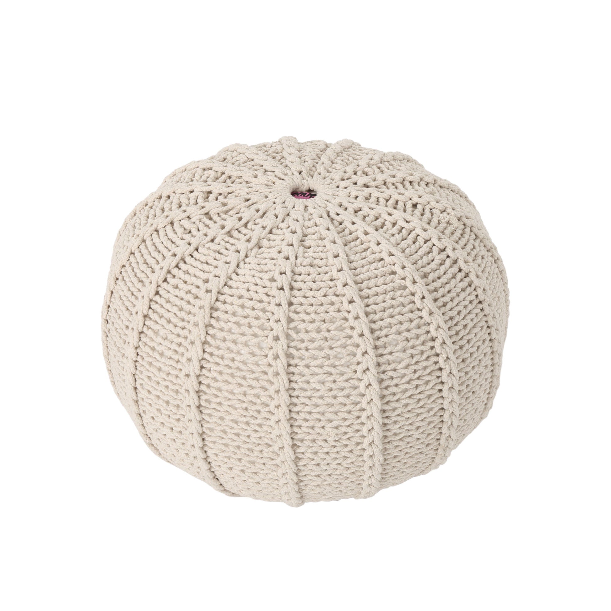 Bordeaux - Knitted Cotton Round Pouf, Versatile Ottoman And Floor Cushion - Beige